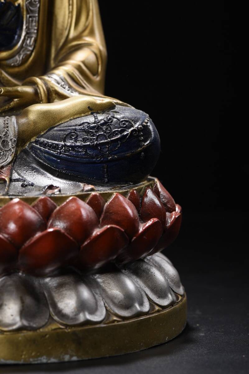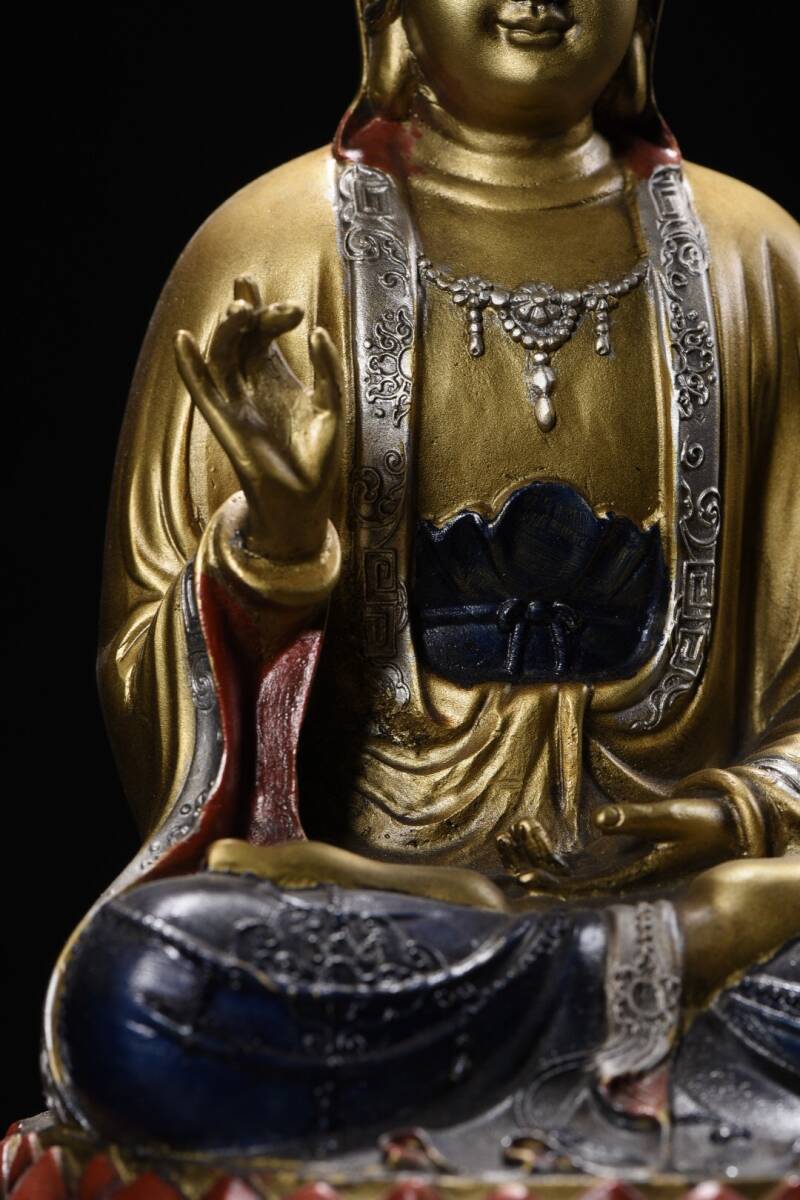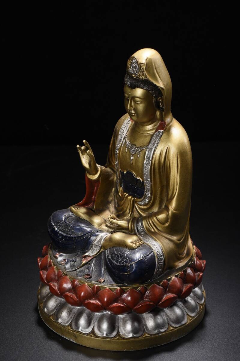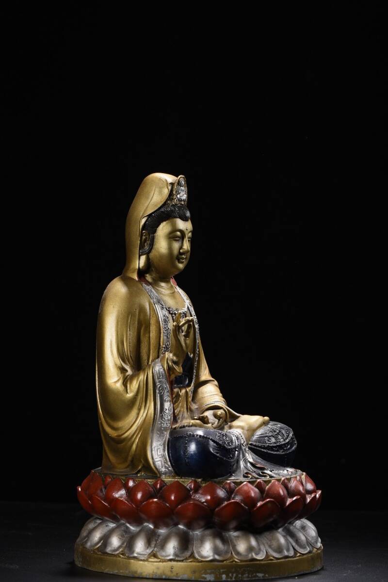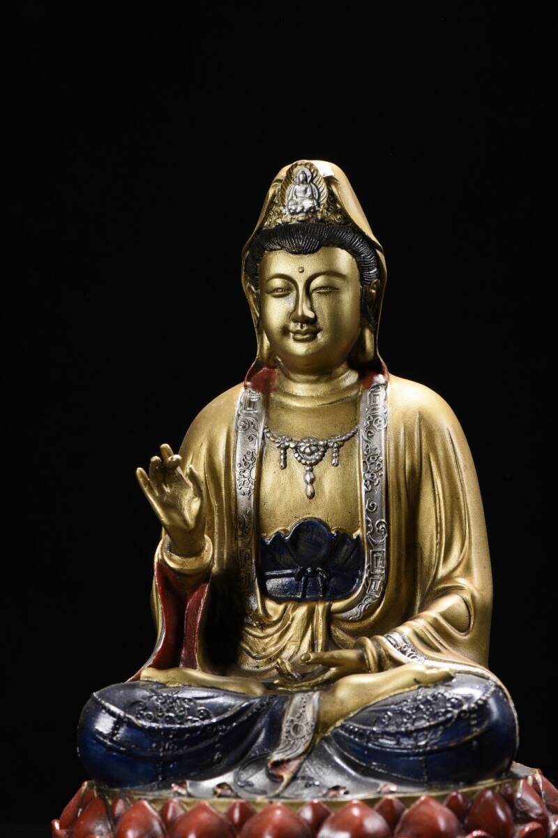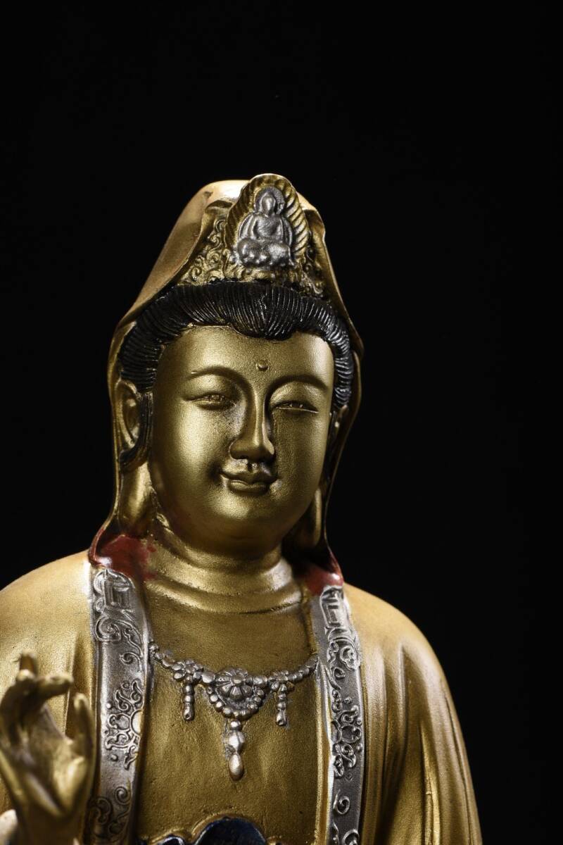 【超珍館蔵】銅製 金鍍 彩繪 觀音菩薩像 置物 古賞物 古美術品 稀少珍蔵品