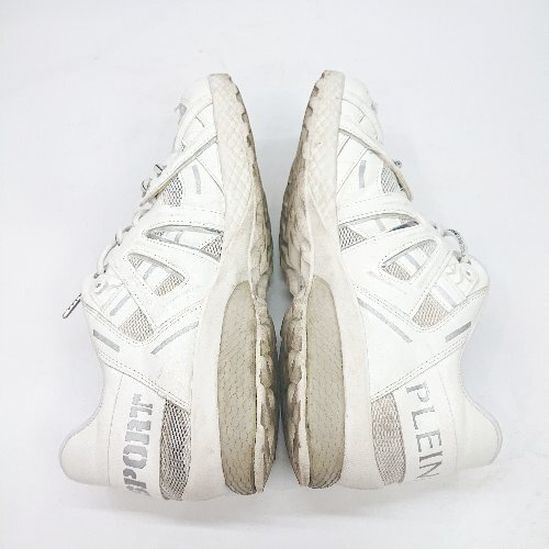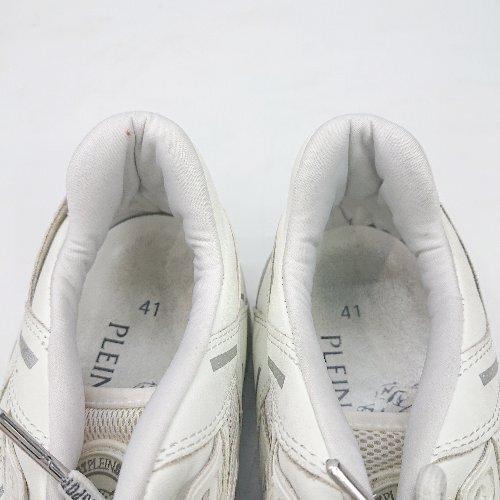◇ Θ PLEIN SPORT ブランドロゴプリント ローカットスニーカー サイズ41 ホワイト シルバー系 メンズ E