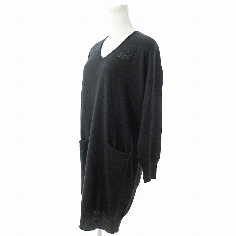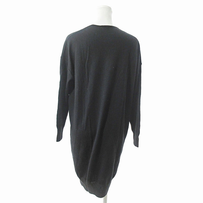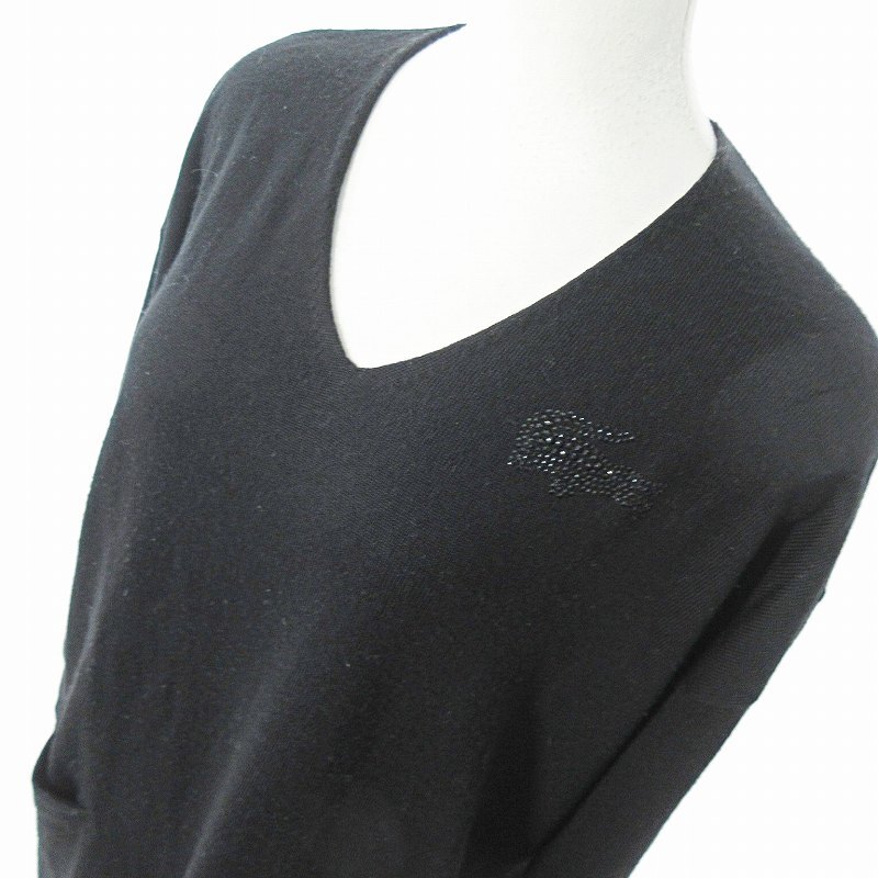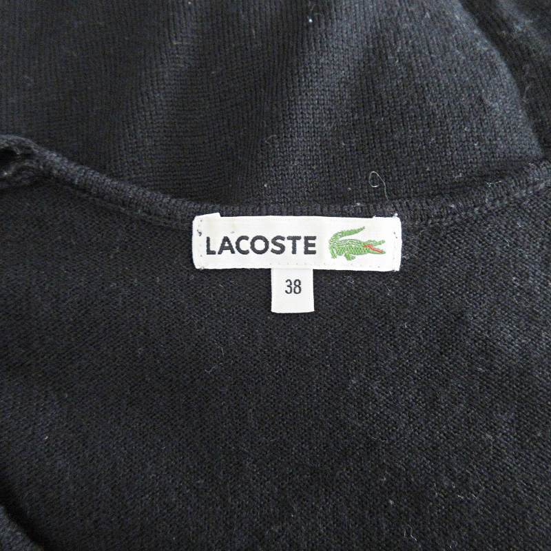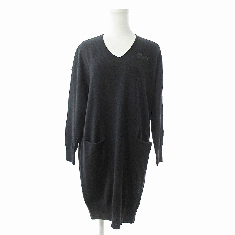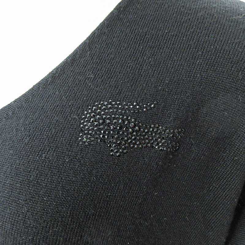 ラコステ LACOSTE ニット ワンピース 長袖 膝丈 ロゴ装飾 ビジュー ストーン コクーン Vネック ポケ付 38 黒 ブラック 0319