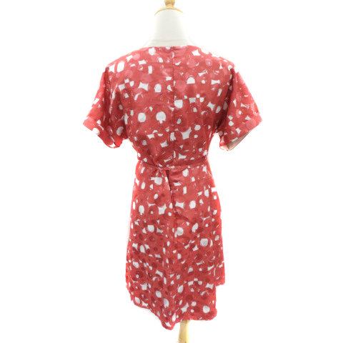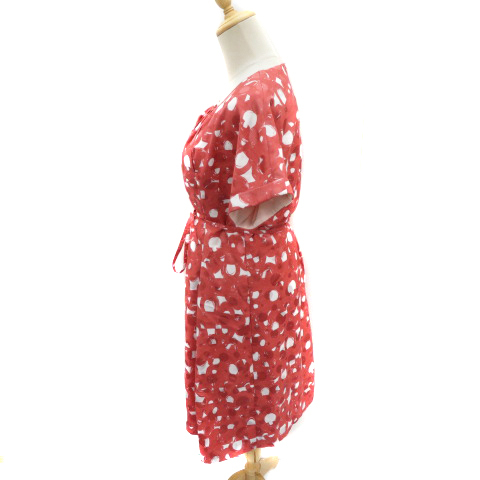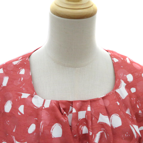 ブランエブランシュ マタニティワンピース ひざ丈 半袖 スクエアネック ウエストリボン ドット柄 M コーラルピンク /YK9 レディース