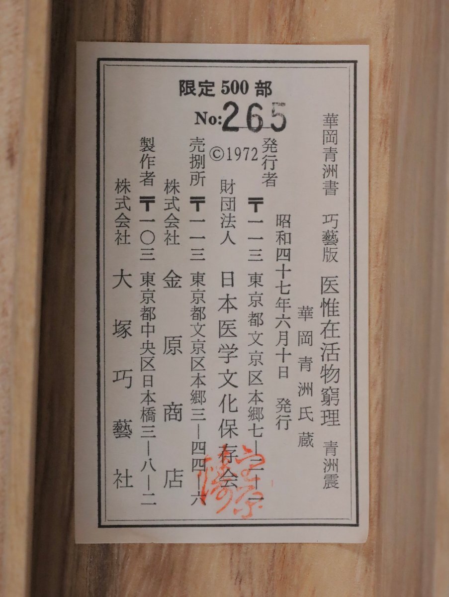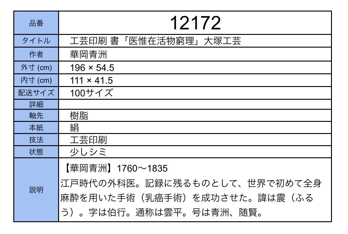 【工芸印刷】吉】12172 華岡青洲 書「医惟在活物窮理」大塚工芸 世界初の全身麻酔手術 外科医 医者 書家 掛軸 掛け軸 骨董品