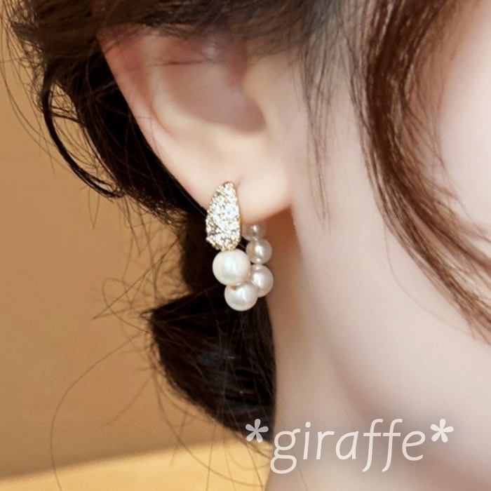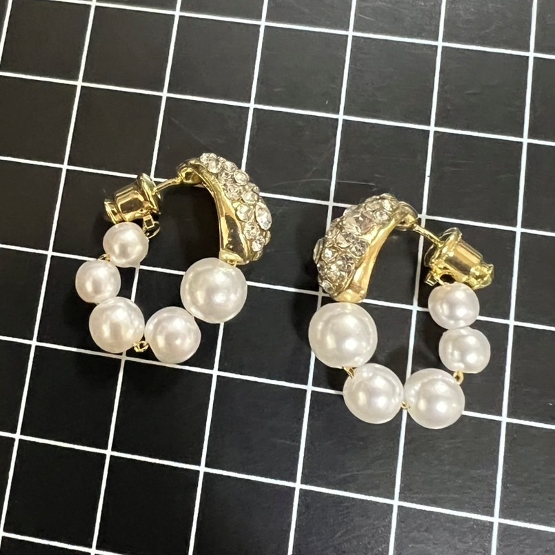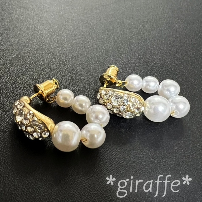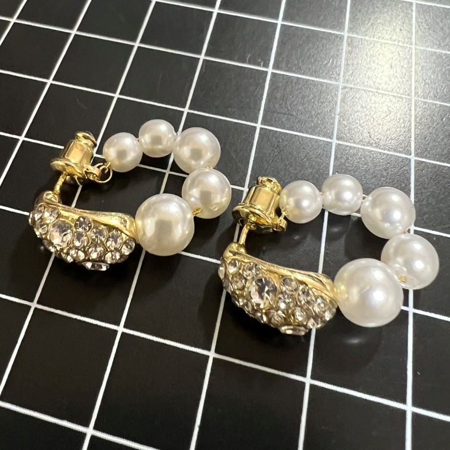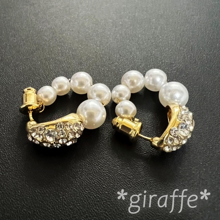 ゴールドカラーとパールが上品なデザインのリングピアスです。