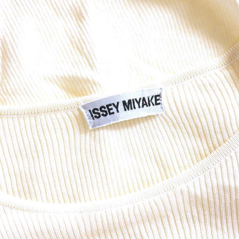 イッセイミヤケ ISSEY MIYAKE クルーネック リブニット カットソー 長袖 M オフホワイト 白 IM41-KN017 レディース