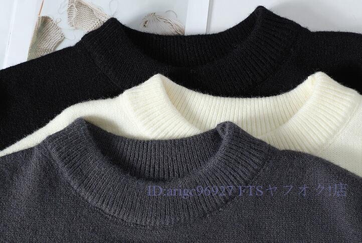 ★新品秋冬 お色選択可 メンズ プルオーバー 高級感 秋冬 ニットセーター カシミヤウール混 ラウンドネック トップス おしゃれブラック