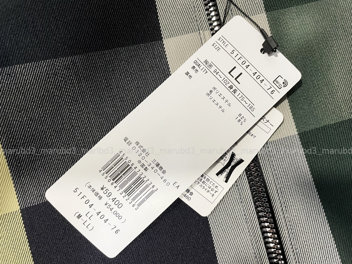 新品・未使用/カラー: グリーン×ブラック /サイズ:LL/肩幅48×身幅58×着丈67×袖丈62cm(多少の誤差はご了承ください)/素材:ポリエステル82・ウール18%/定価:59,400円/個人使保管につき、記載個所以外の微細な傷汚れ等ある場合が有、ご了承の上、ご入札ください。(NCNRでお願いします)
