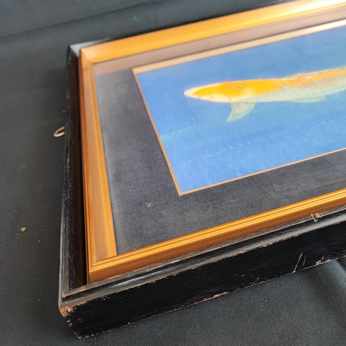 錦鯉 絵画 アート 額装 壁掛け インテリア 和風 日本画 風水 金運 開運 魚 金色 青系 美術品