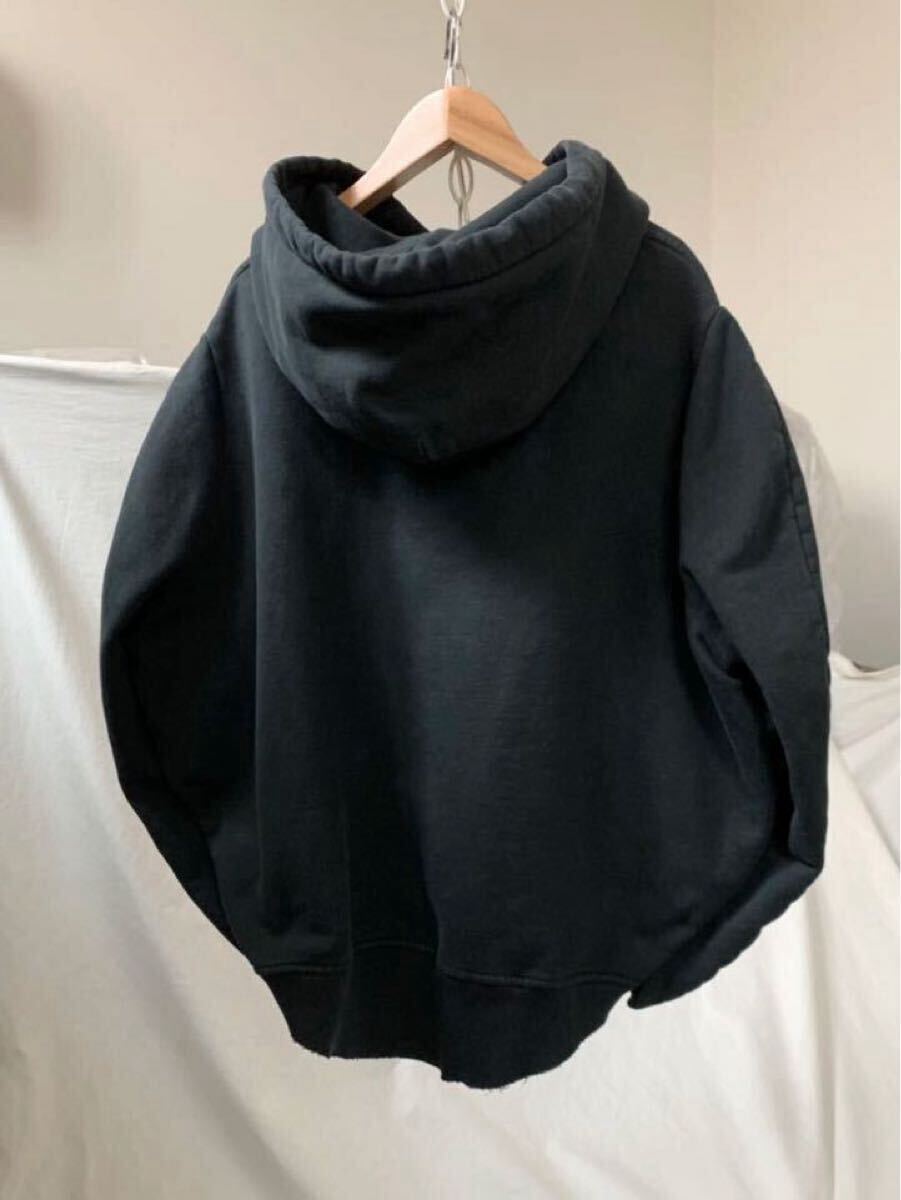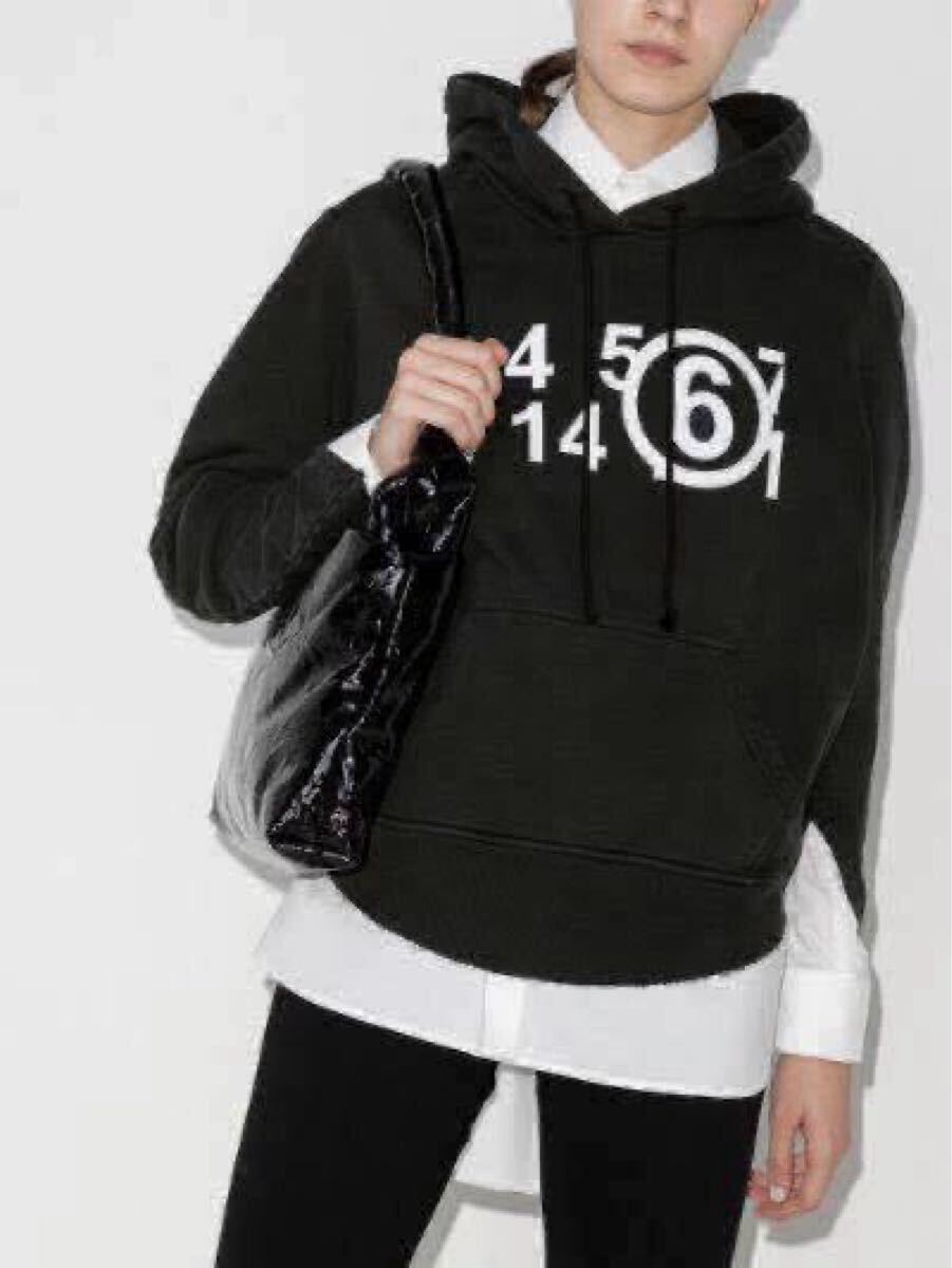 MM6の2020AWコレクションから、サークルシルエットのロゴスウェットパーカーです。今季のノースフェイスとのコラボでも目を引いたMM6らしい彫刻的なサークルシルエット。袖の裾は斜めにカットされ、全体的に丸みを帯びたデザイン。製品洗いが施されたこなれた生地感や、裾の切りっぱなしの仕様など、ヴィンテージライクなニュアンスが醸し出された一枚です。