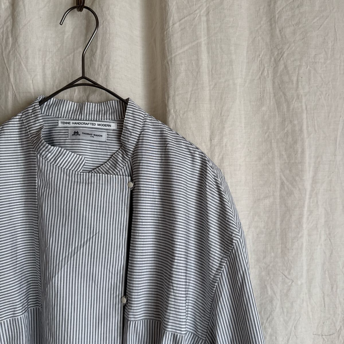 TENNE HANDCRAFTED MODERNのストライプスタンドカラーシャツワンピースです。