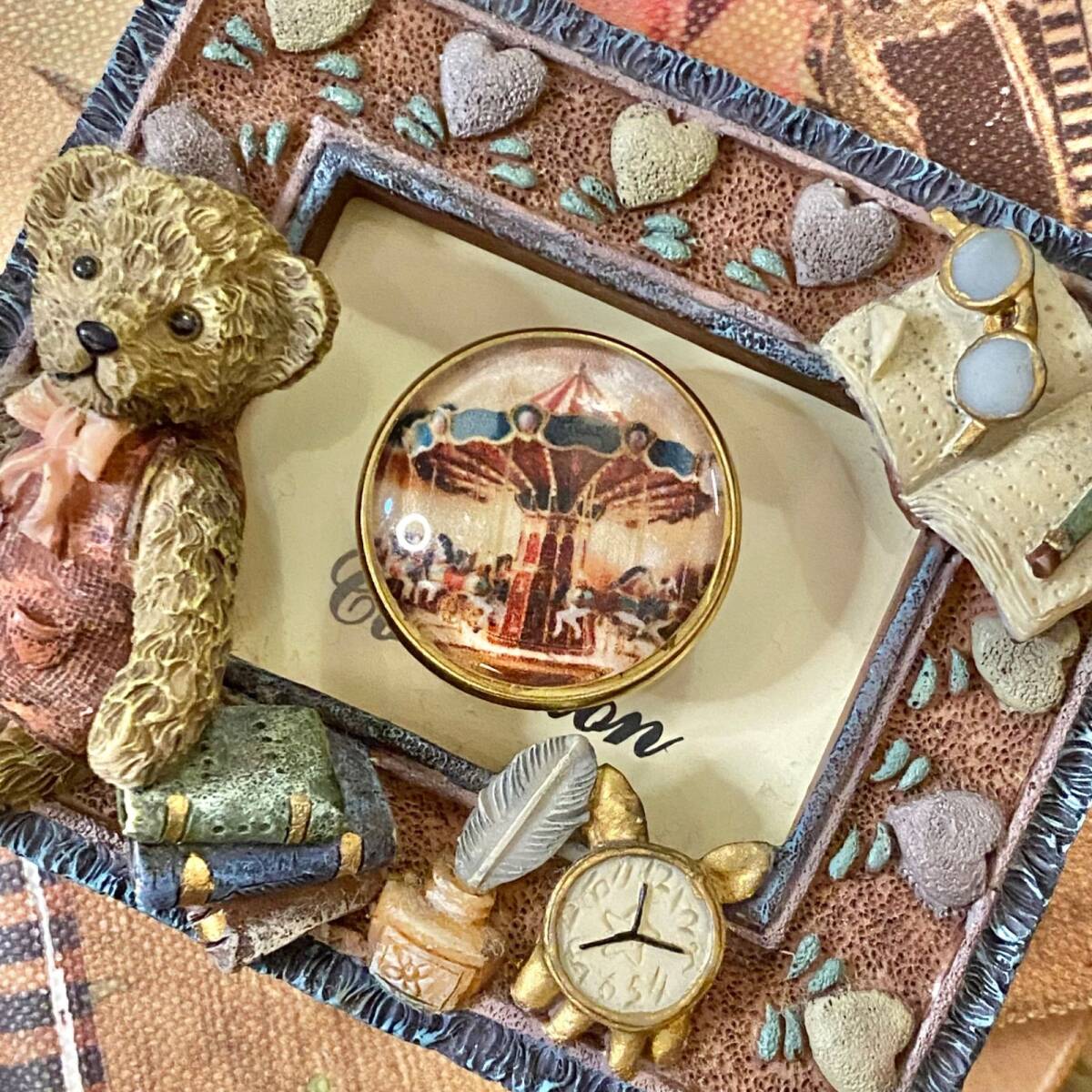 【着物 ハンドメイド ガラス 帯留め|和洋折衷のアクセントに オリジナルデザイン 華やかな装飾に彩られたアンティークのメリーゴーランド GK-40】
