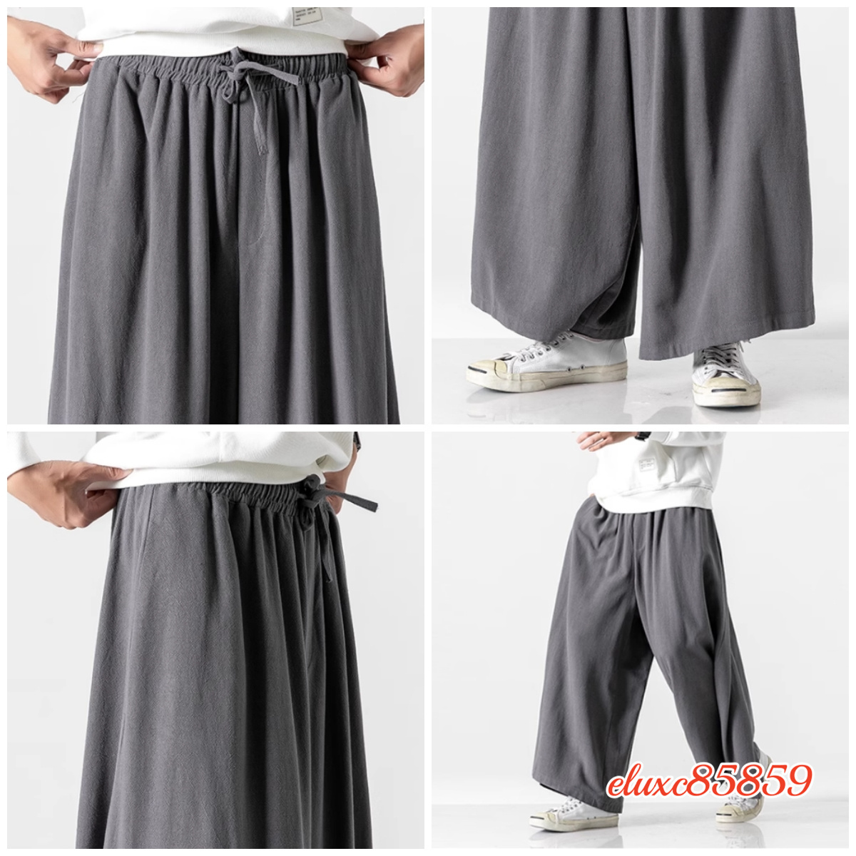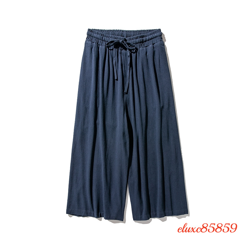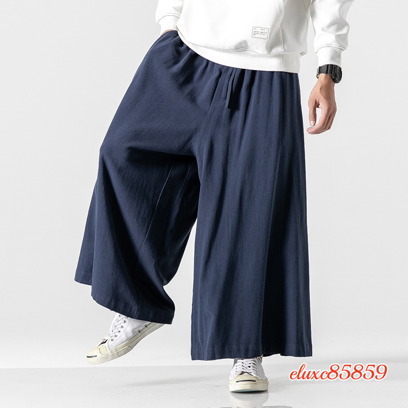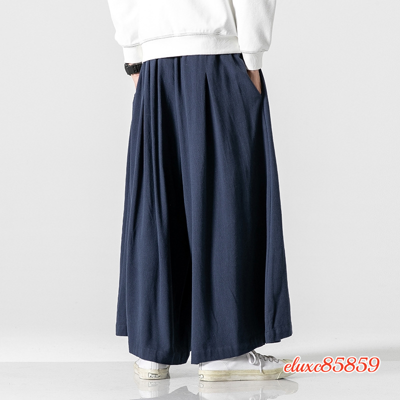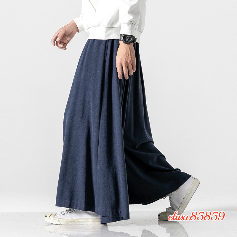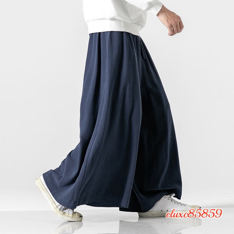 特売 春夏新品 サルエルパンツ メンズ リネンパンツ 無地 ストレート ロングパンツ ワイドパンツ ゆったり サイズ選択可M ネイビー