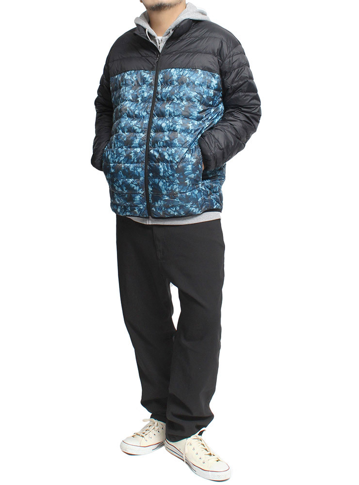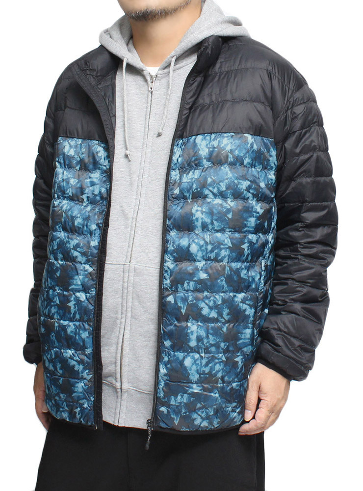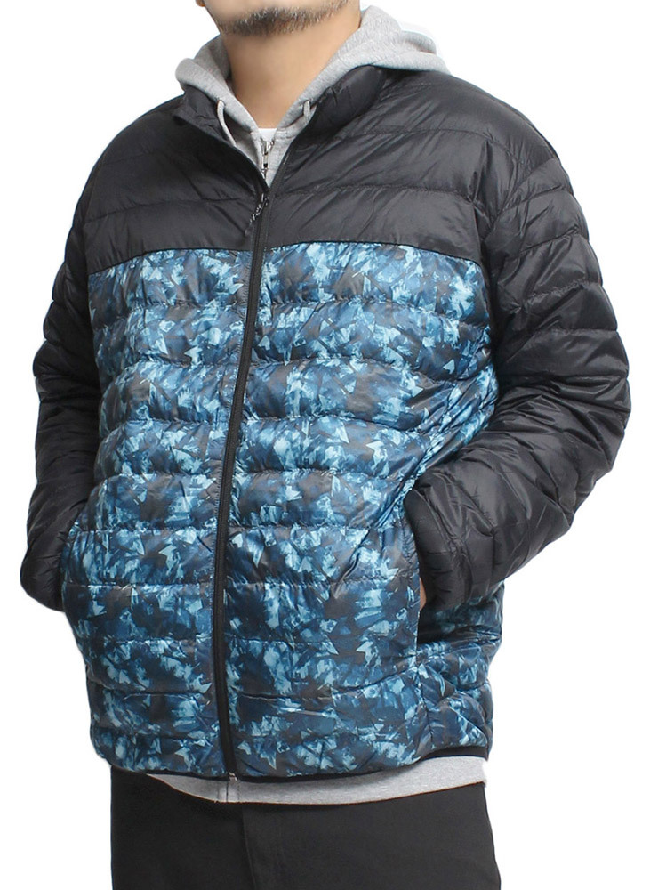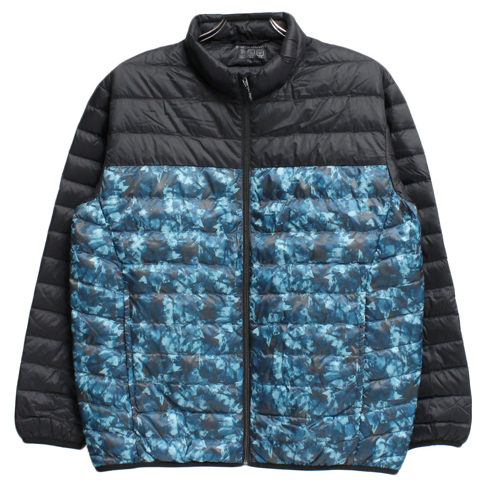商品名 | 【新品】 4L ブラック×幾何学 ダウンジャケット メンズ 大きいサイズ 軽量 防風 撥水加工 薄手 リアルダウン スタンド ジャケット |