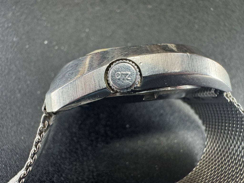 | 【諸 元】 | 型式: GN-4-5 寸 法:【横】約38mm(竜頭含まず)×【縦】約40.15mm×【厚】約12.55mm 【腕回り】約165mm ※素人採寸の為、参考程度に御考えください。駆動方式: 自動巻き(オートマチック)材 質: ステンレス 製造年月日: 不 明 |
