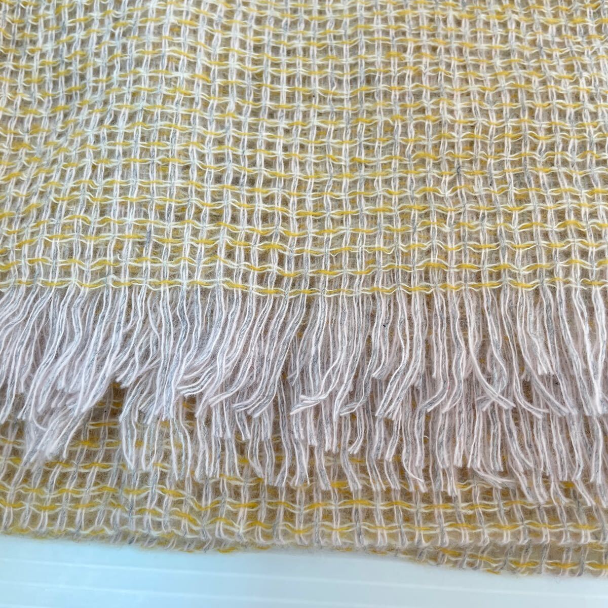 カシミヤ100%の商品タグが付いてあるストールと一緒に