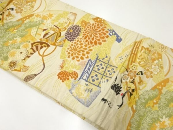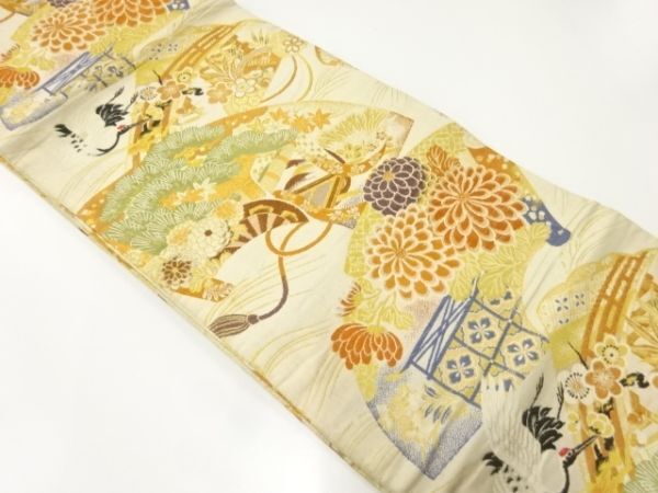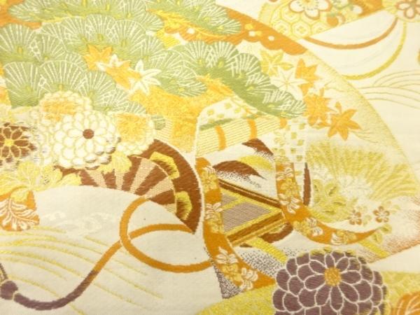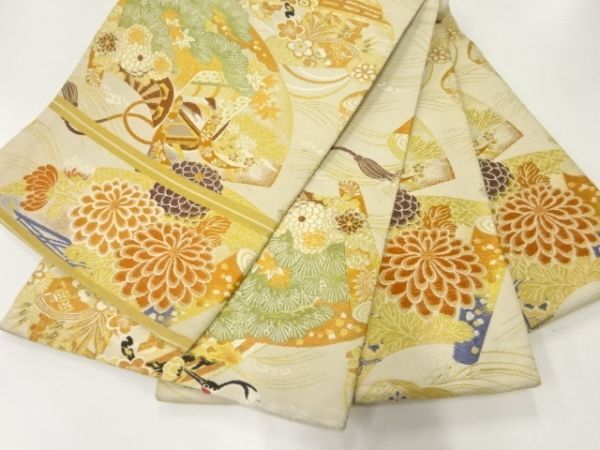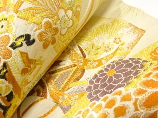 ys7343034; 地紙に御所車模様織出し丸帯(材料)【アンティーク】【着】