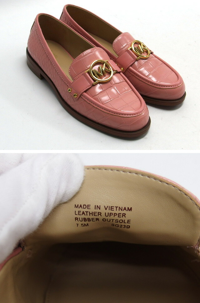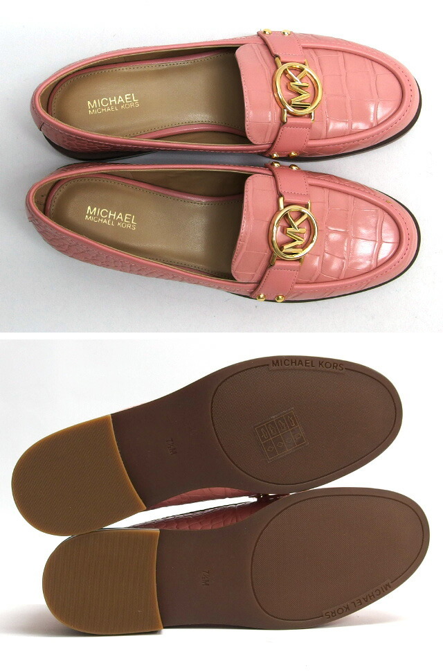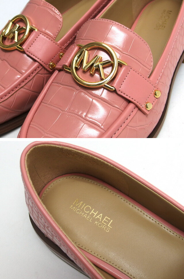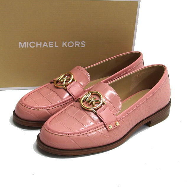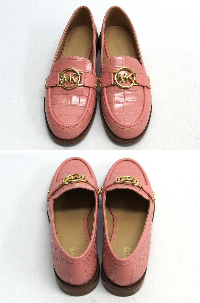 | 商品名 | カルメン ローファー MKサークルロゴ モカシン シューズ 型押しレザー プリムローズ ピンク ゴールド金具 クロコ型押し ゴム底 サイズUS7.5 約25cm レディース |