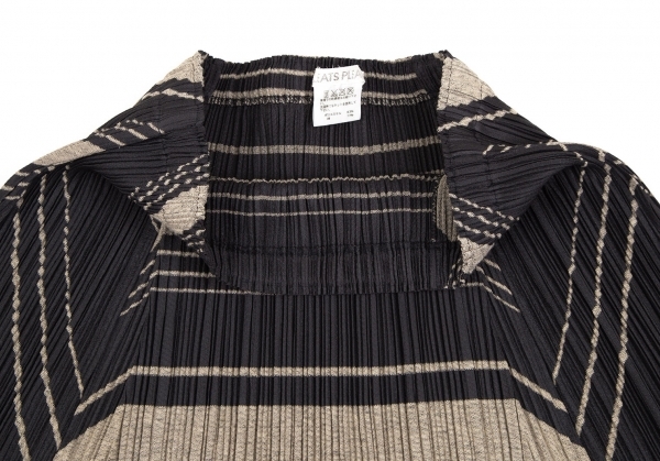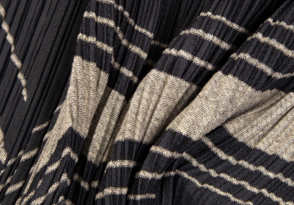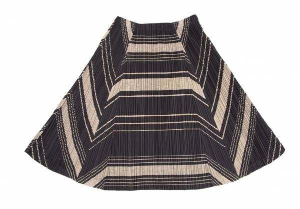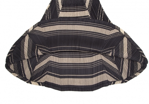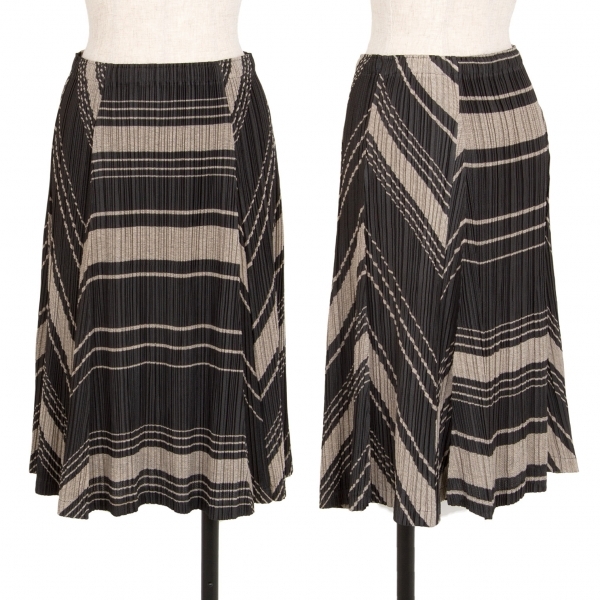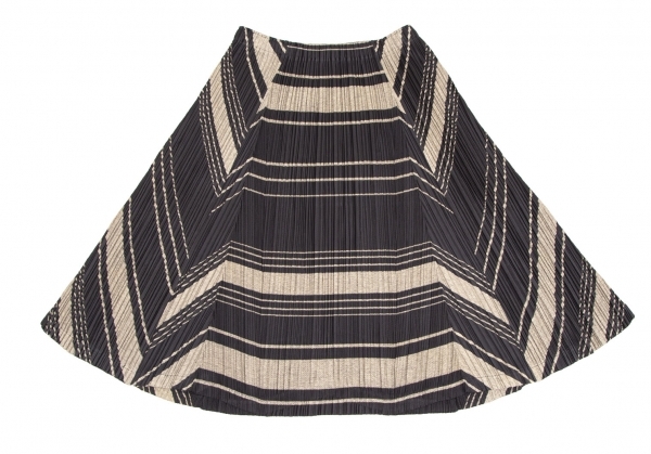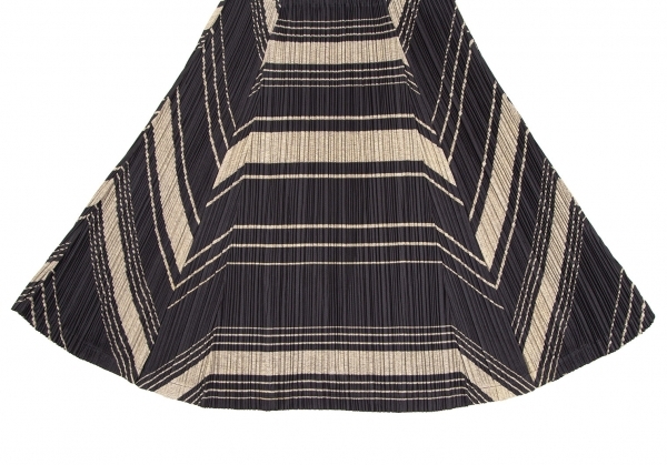 | プリーツプリーズPLEATS PLEASE ポリコットンプリーツマルチボーダープリントスカート 黒ベージュ4 |