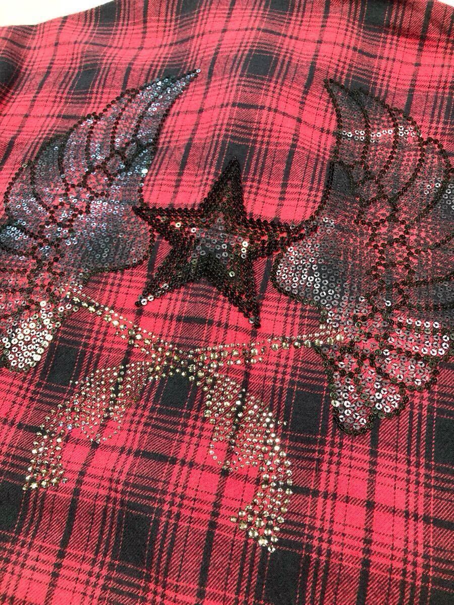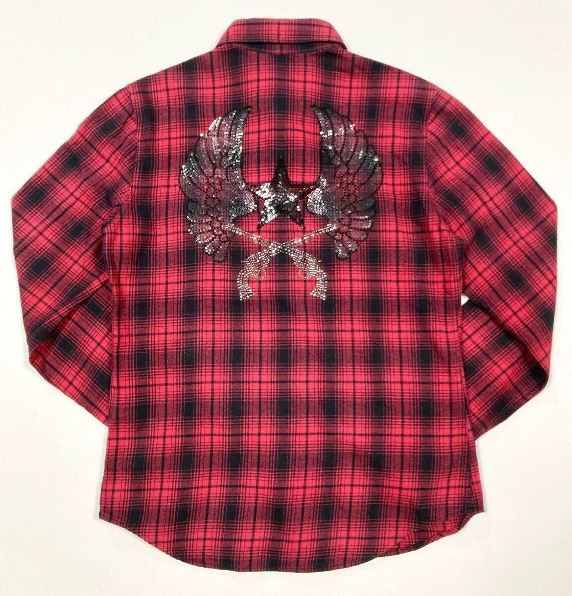 今回出品致しましたのは、“10FRS-04B”、背中に「roar」のアイコンでもある“クロスピストル” “スター” “ウィング” がデザインされた、チェック柄のコットンフランネルシャツになります。