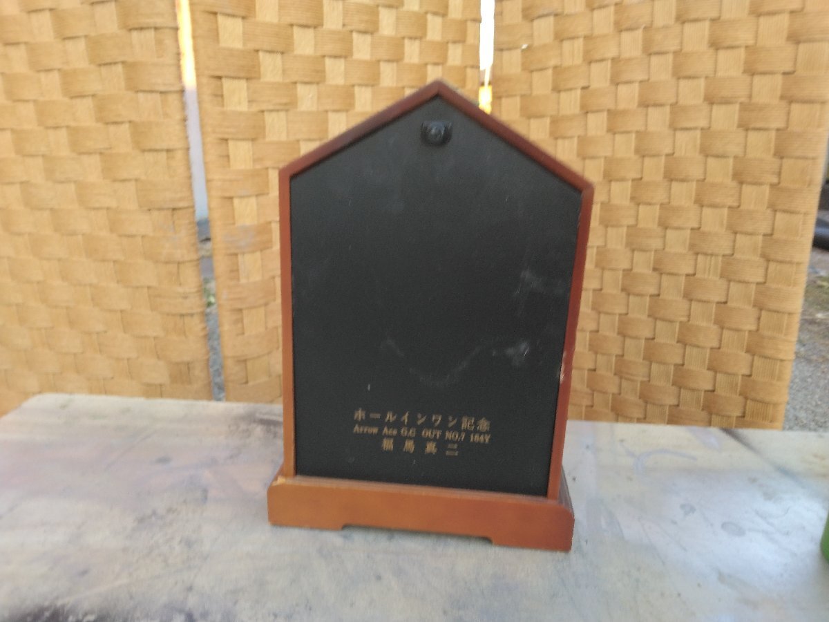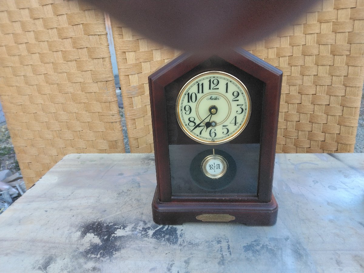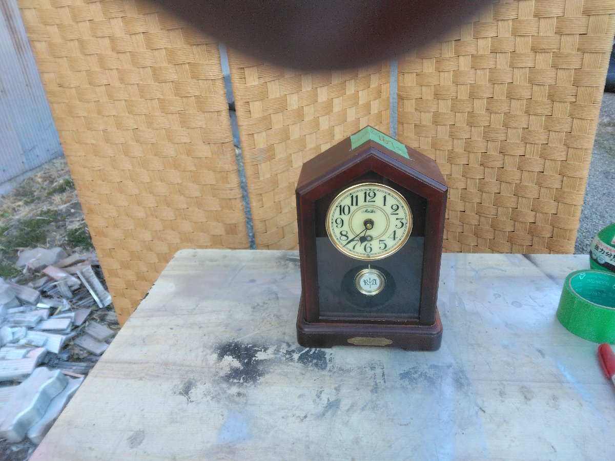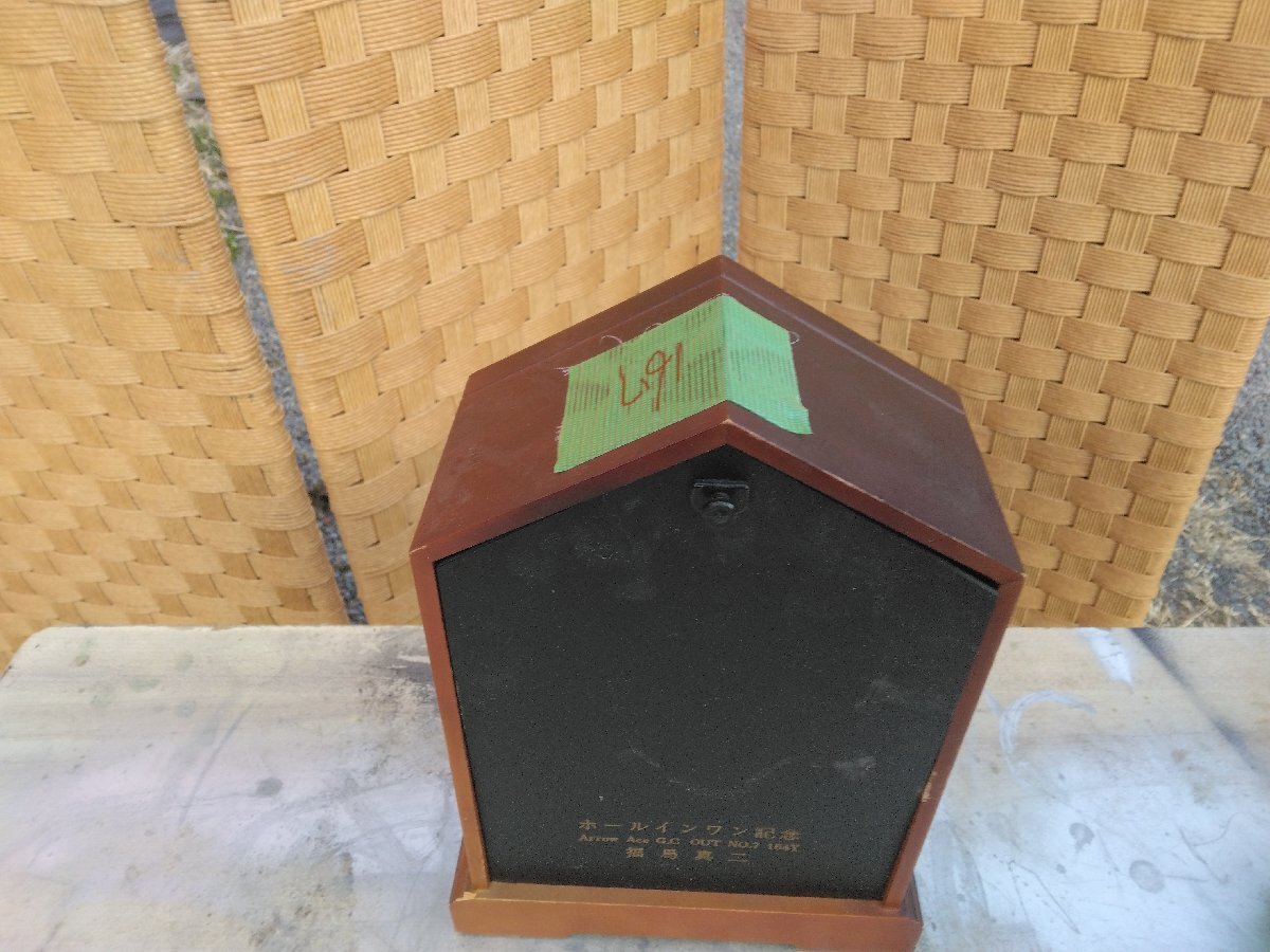 置き時計:木製家形:時計:記念品です:名が記入:中古
