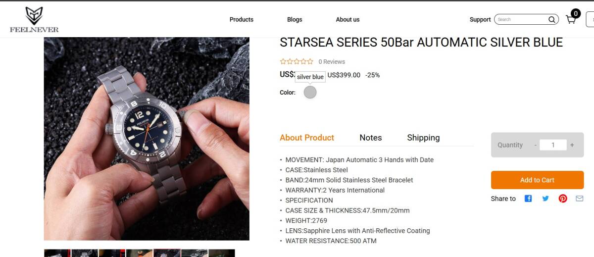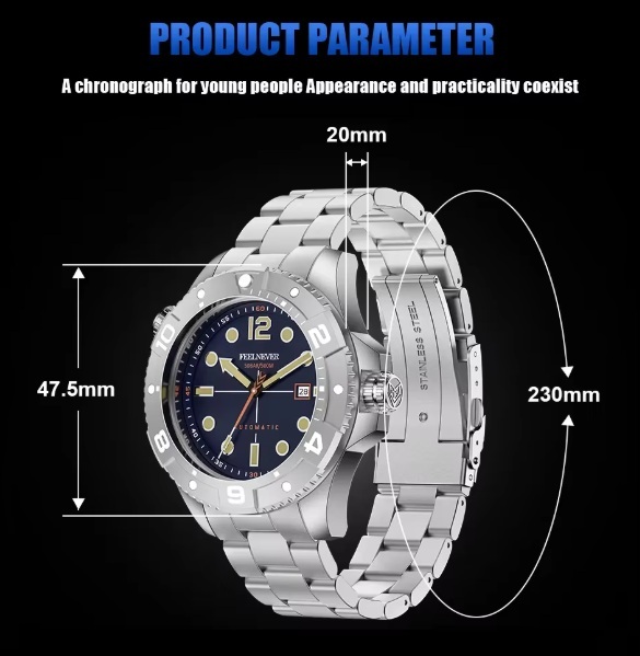 公式サイト https://www.feelnever.com/business-series/starsea-series-50bar-automatic-silver-blue.html