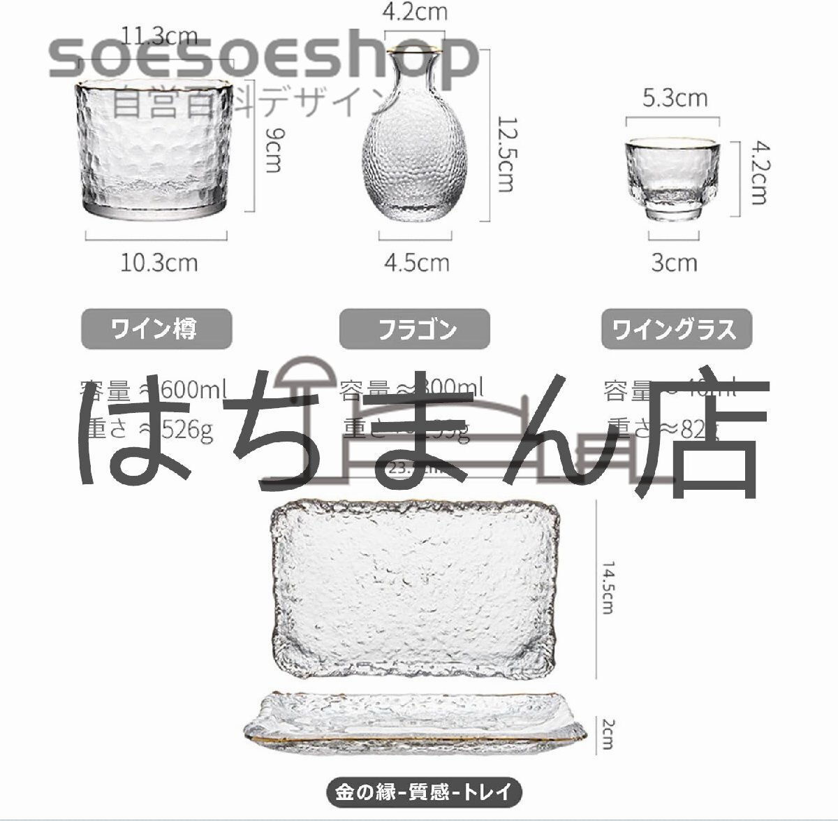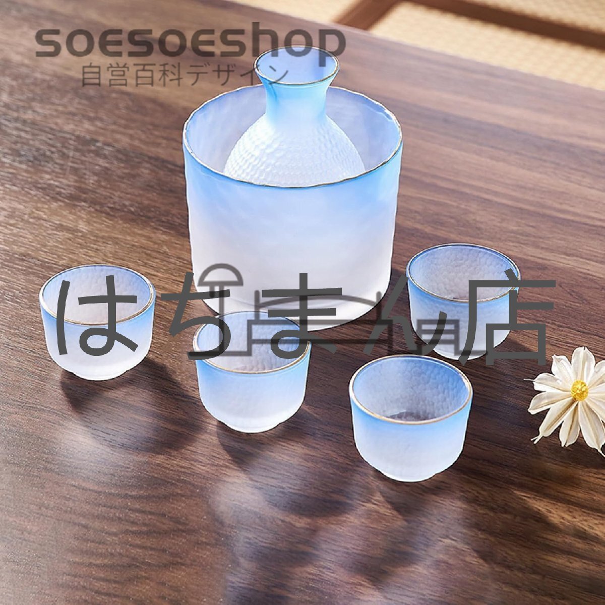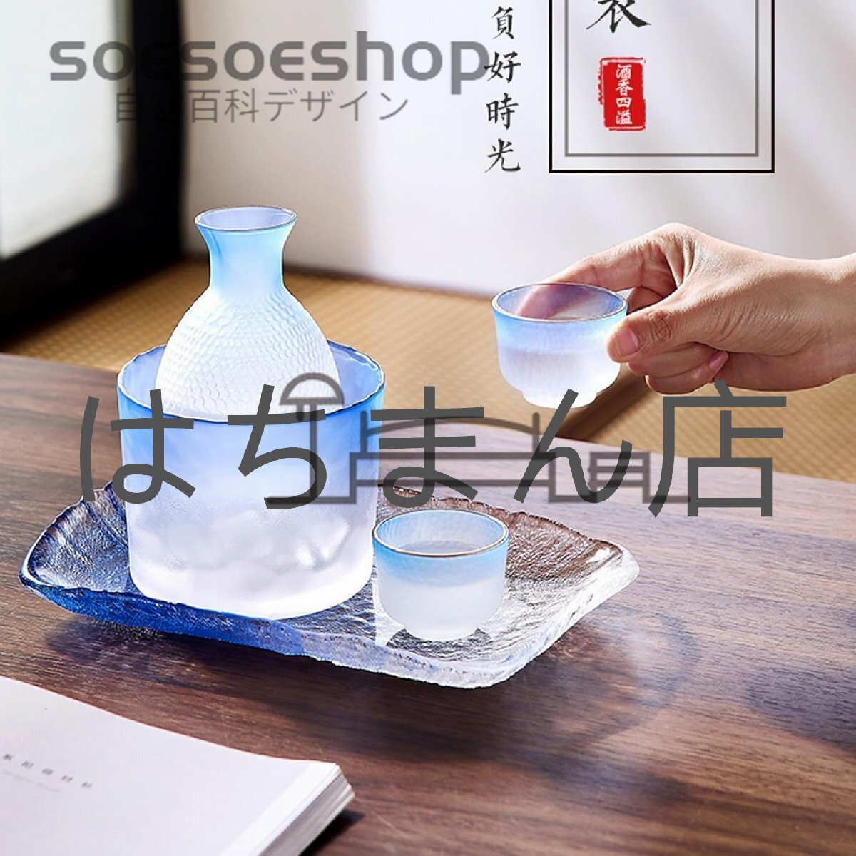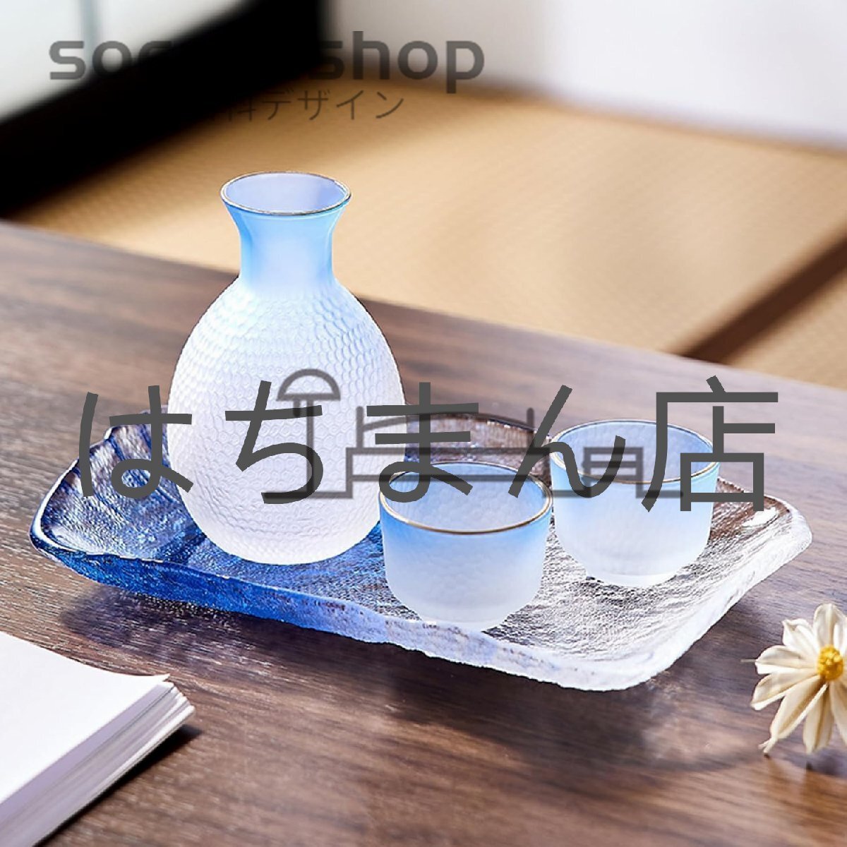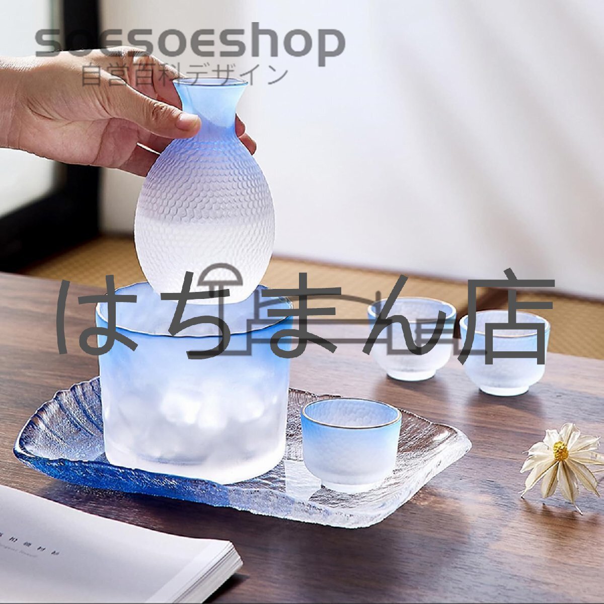 酒器セット 冷酒器 600ml+300ml+40ml*4個 日本酒 ガラス徳利セット 冷酒耐熱ガラス 盃 トレイ シンプル おしゃれ 居酒屋 家庭用 氷青