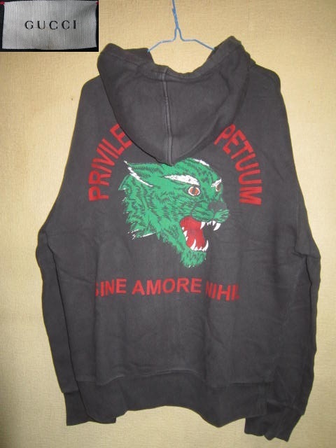 超レア! 正規品 GUCCI PRIVILEGIUM PERPETUUM SINE AMORE NIHIL グッチ パンサー フルZIP スウェット パーカー 黒 L フーディー タイガー