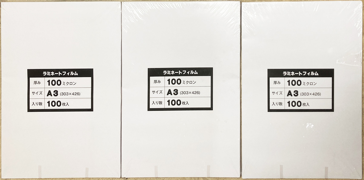 ラミーコーポレーション(TOOLS/M) HOTDOG ラミネートフィルム 100μ 303mm×426mm (A3) L 100枚×3箱 合計300枚 未開封品 100ミクロン