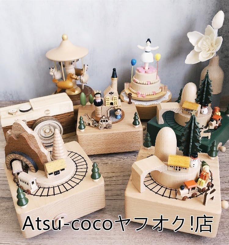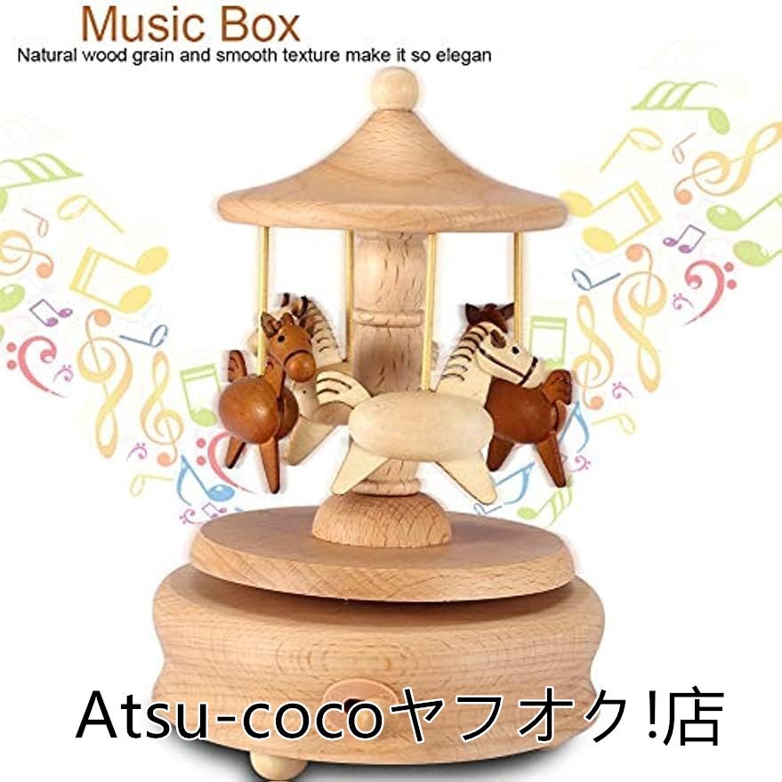 木製オルゴール ヴィンテージオルゴール メリーゴーランド 音楽ボックス 回転木馬 DIYでき 工芸品クリスマスギフト/装飾用品 (O)