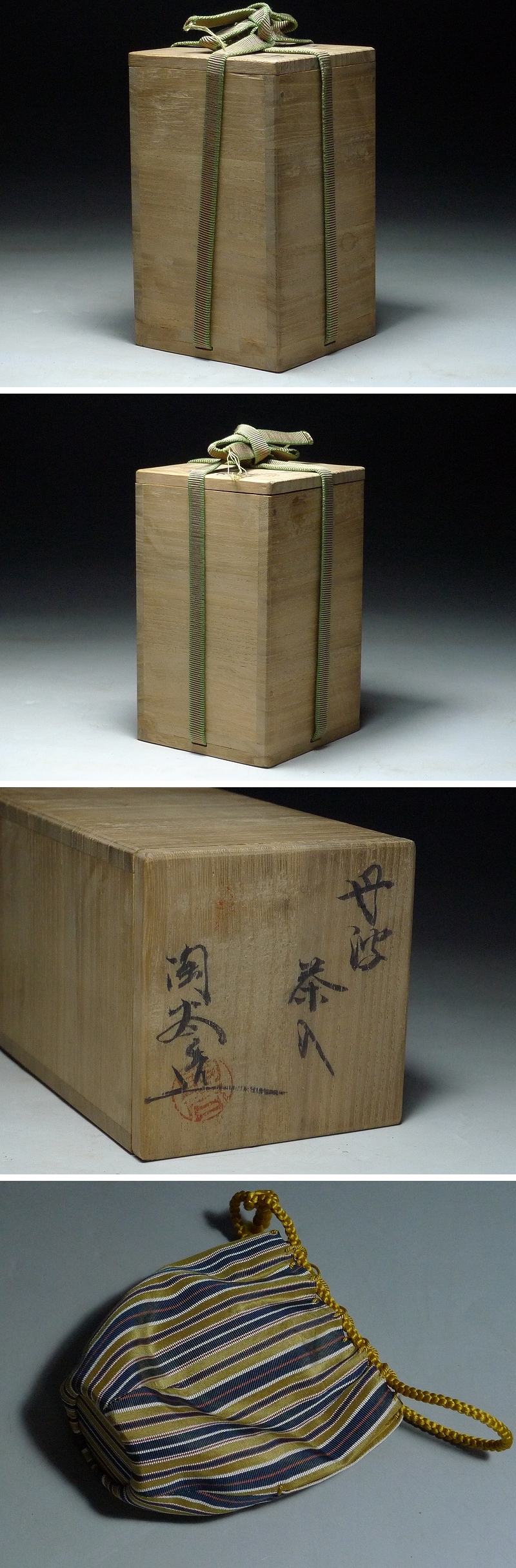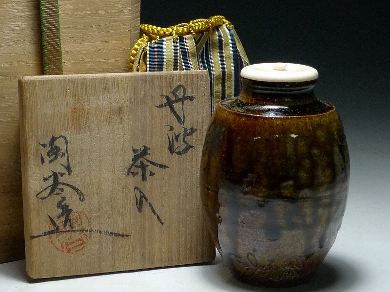 60MK01▲茶道具・陶太造・丹波 白材蓋茶入・共箱・仕覆付き・陶器 濃茶器 容器・古美術・伝統工芸・木箱