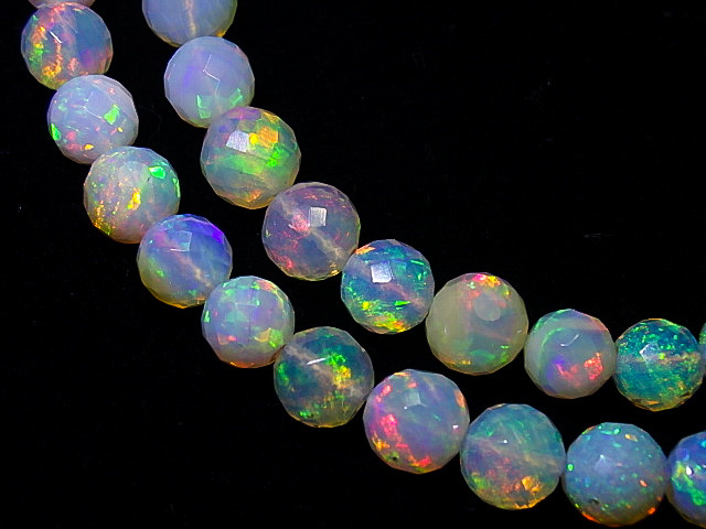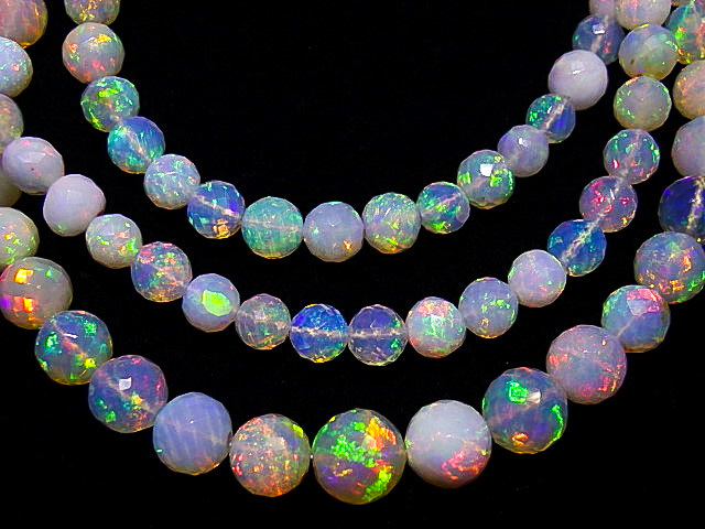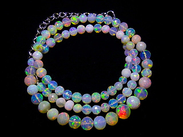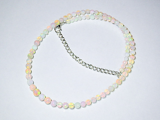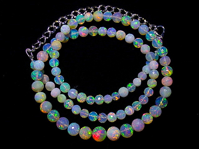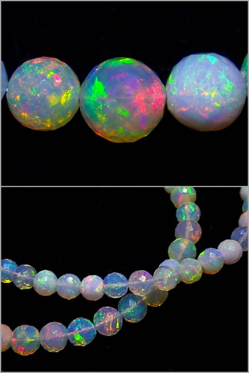 ★オパール★66.0ct/52cm★1連ビーズ★ラウンドファセットカットネックレス★天然石蛋白石宝石ジュエリーレディース★ボールopal necklace