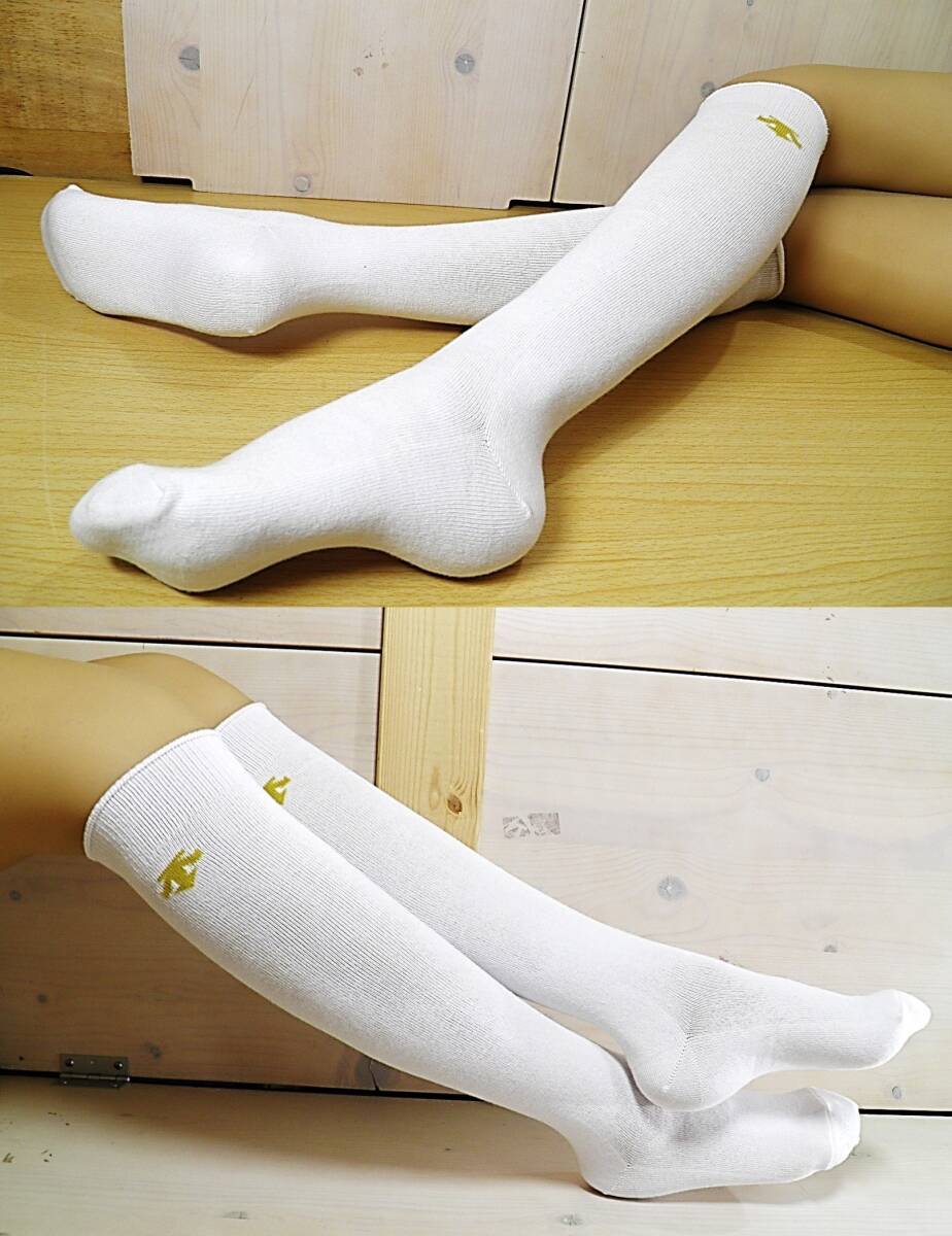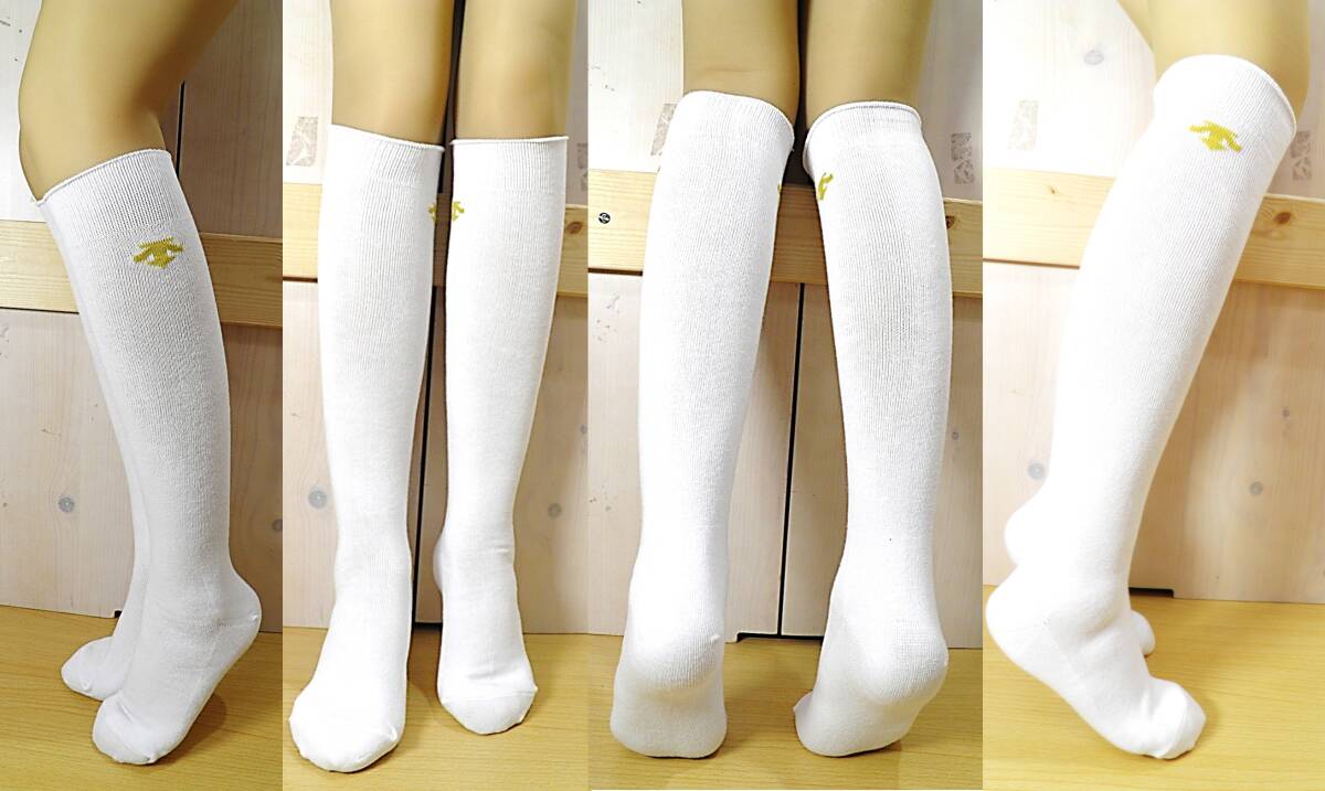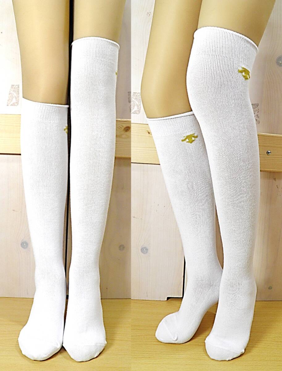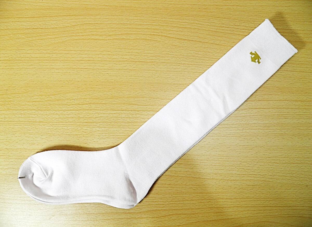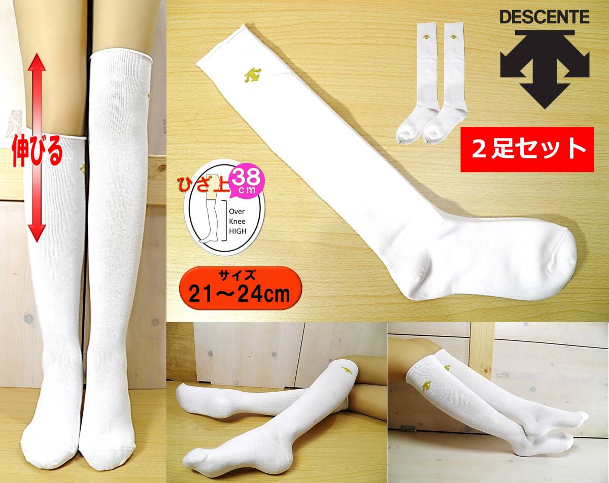 【未使用品★レッグウェア】DESCENTE◆デサント◆両面ロゴ刺繍◆白 ハイソックス2足◆アンダーソックス◆21-24cm◆補強◆よく伸びる◆