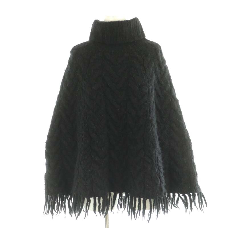 ダナキャランニューヨーク DKNY ニット ケープ ウール フリンジ S 黒 ブラック /AT ■OS レディース