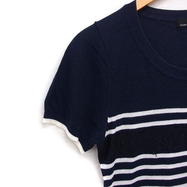 クリアインプレッション CLEAR IMPRESSION ボーダー レース 切替 ニット セーター 半袖 ラウンドネック 綿混 3 ネイビー /FT5 レディース