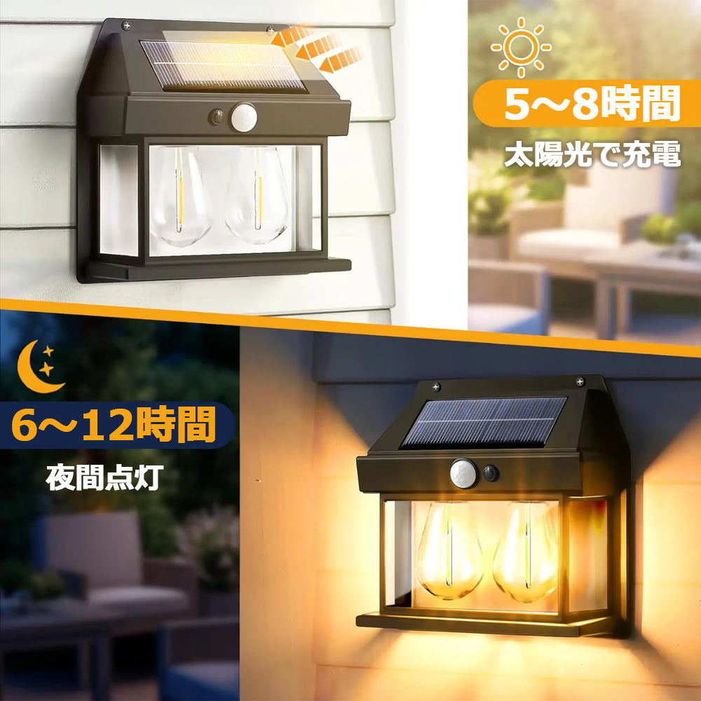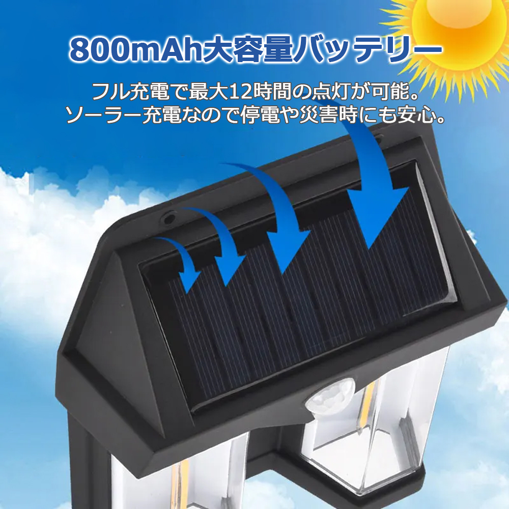 日中はソーラーパネルで充電し、暗くなると自動で点灯モードに切り替わります。