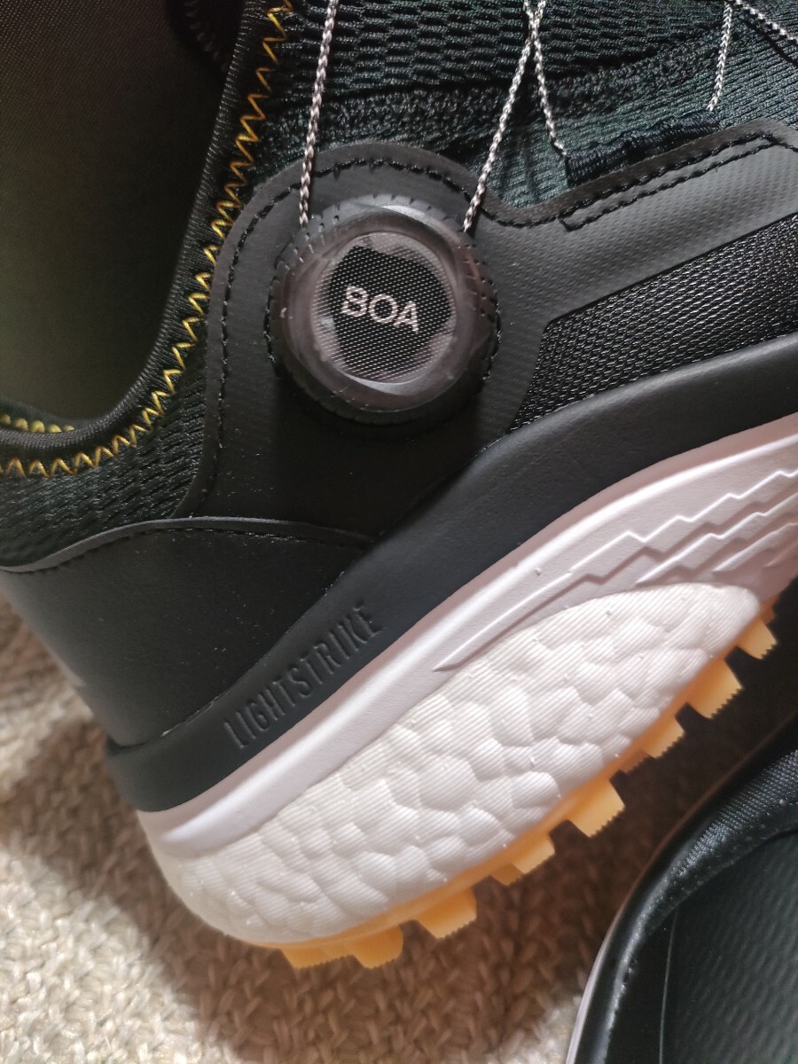 反発力に優れたLightstrikeミッドソールと、ドロップインBOOSTヒールを搭載した作りが、一日がかりのプレーで軽やかな足運びをサポート。