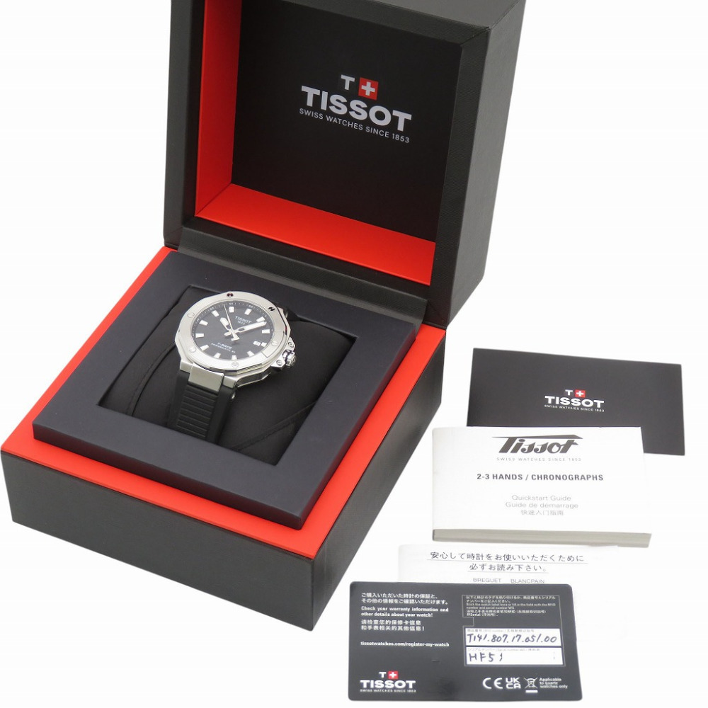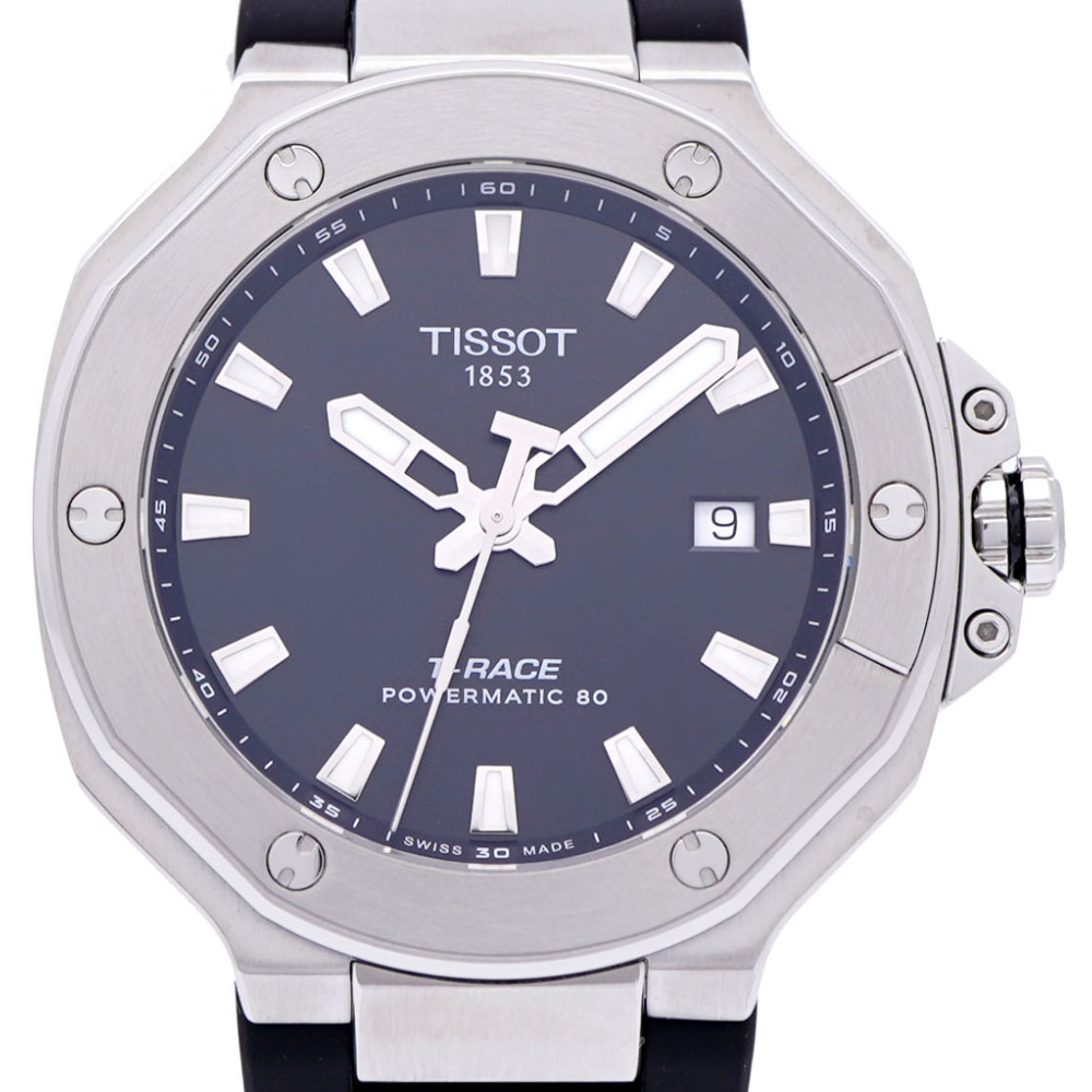 新品同様 ティソ T-レース パワーマティック80 T141.807.17.051.00 自動巻き 腕時計 SS ブラック 黒文字盤 1451 中古 TISSOT メンズ
