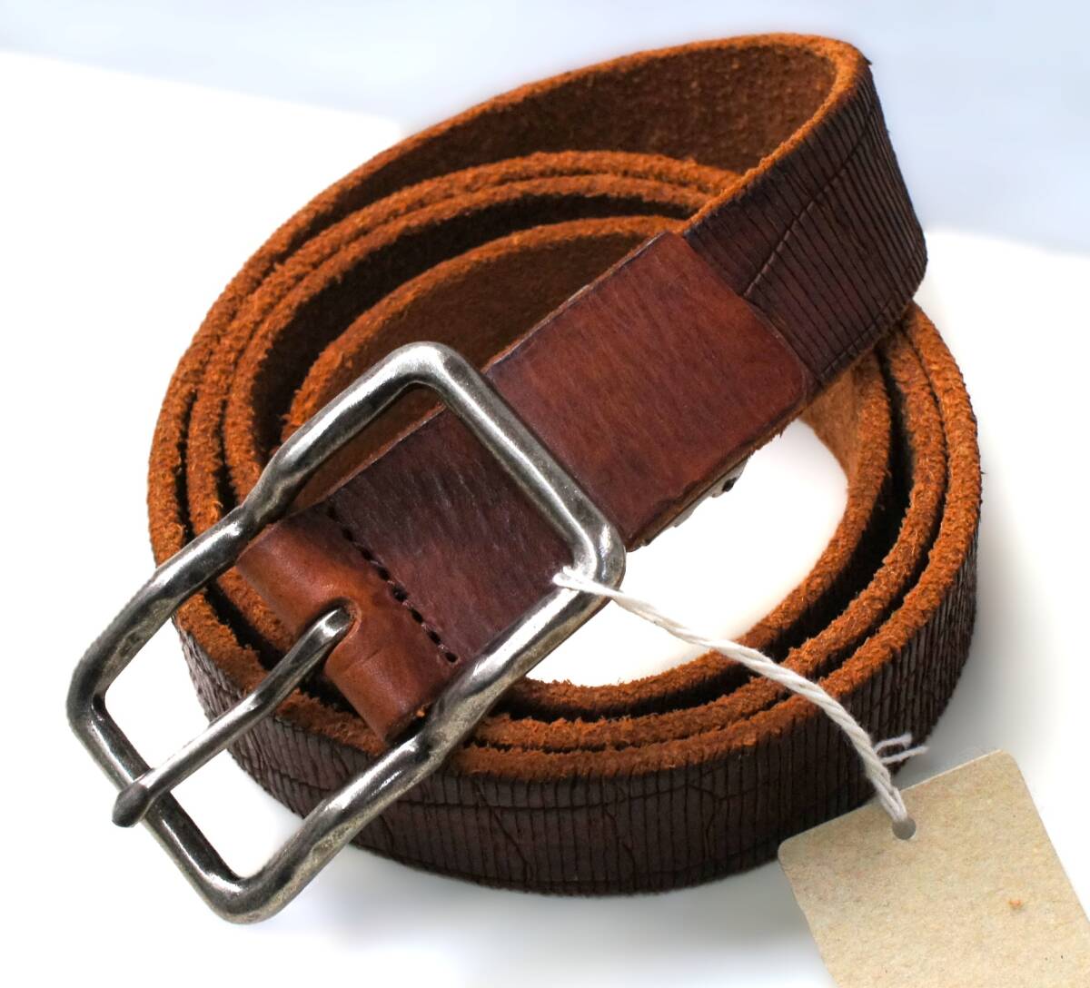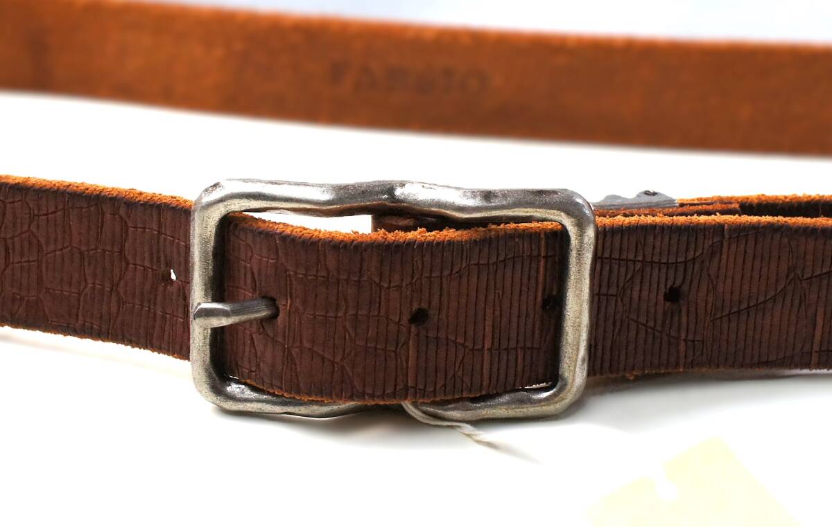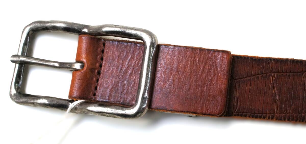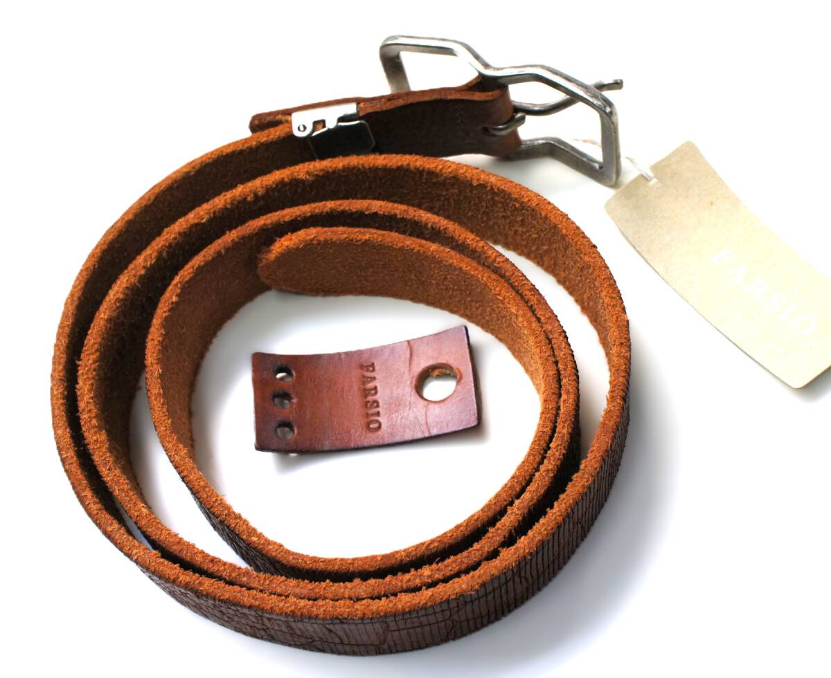 ベースの牛革の原皮はアルゼンチンレザーを使用し、丁寧になめし染色を行った牛革を使用しています。 1本1本、丁寧に手もみ作業を施し、ビンテージ感を演出。 更にクロコダイルの型押しをした上で”鱧の骨切り”の様に表面だけに切り込みを入れて 素材に柔らかさとデザイン性を持たせております。 バックルも細身で手作りの様なバックルを使用した非常に手のこんだ1本です。 =============== ■素材:牛革(アルゼンチンレザー) ■カラー:ブラウン ■全長:約119cm ■幅約2.9cm ■最小ウエストサイズ約97cm〜最大ウエストサイズ約107cm (※カットしてサイズ調整可能) ■生産地:中国 =============== ★新品未使用品です。 aeware | |||