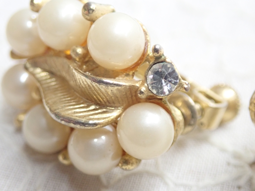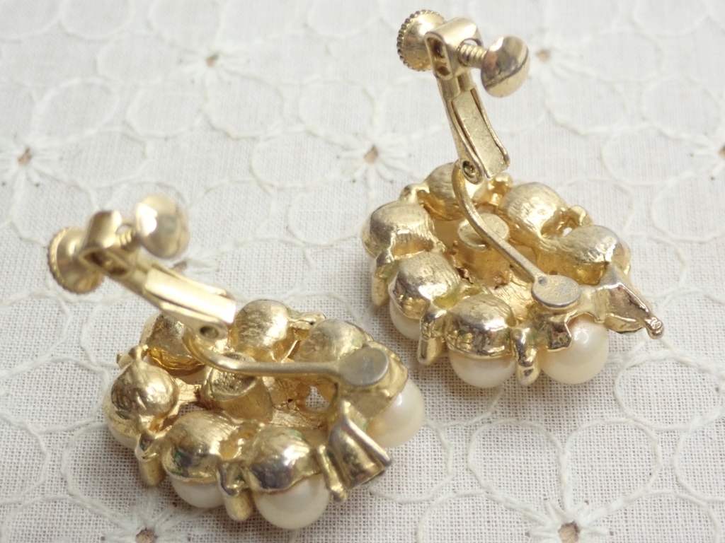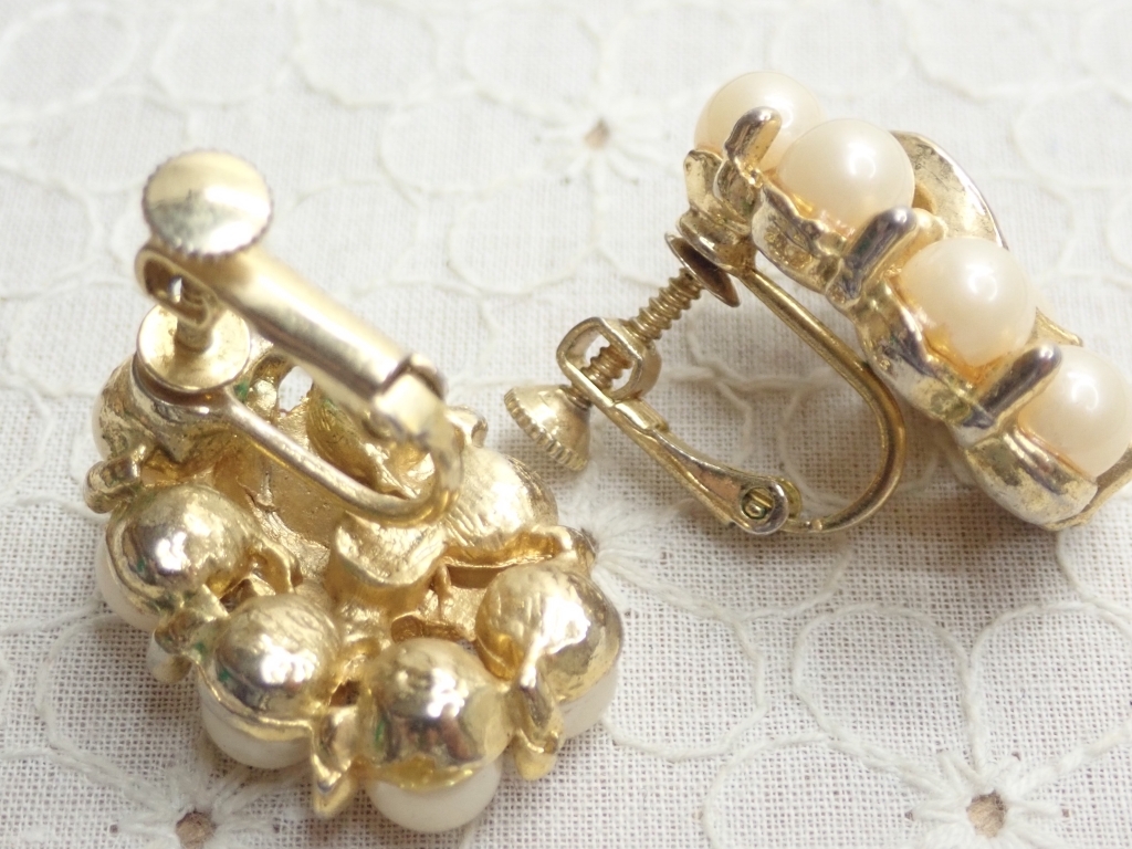 K573 ヴィンテージ イヤリング 玉飾り ゴールドカラー アクセサリー Vintage Earrings