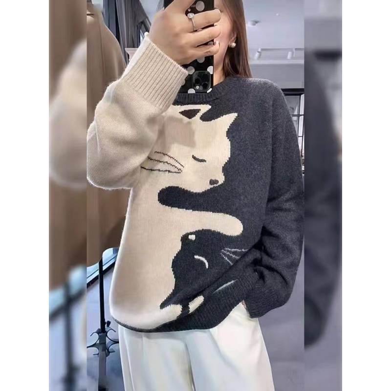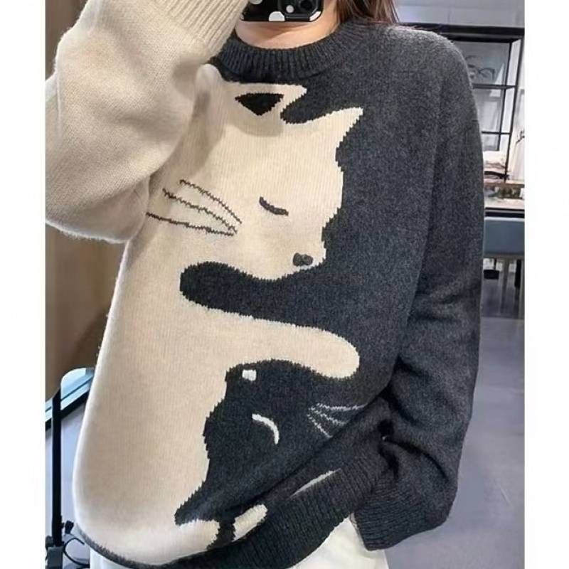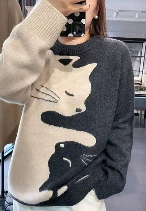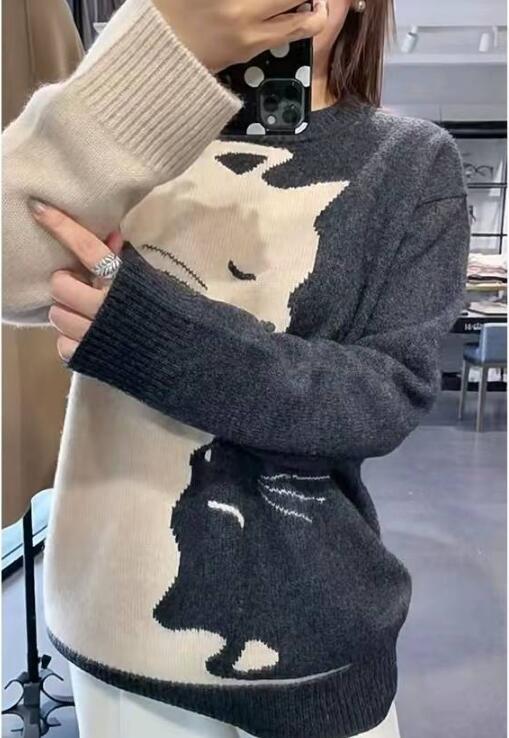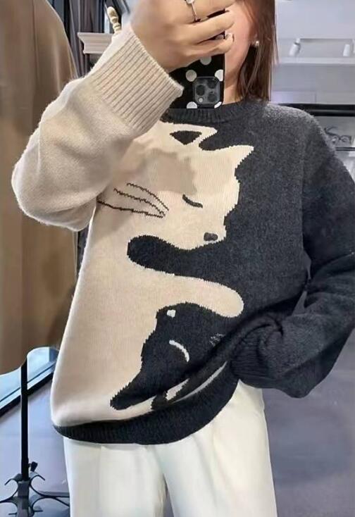 人気品上質ニット セーター レディース トップス 猫柄 長袖 丸首 ニットセーター レディース 秋冬 秋服 冬服 ゆったり 秋ニット 冬ニット