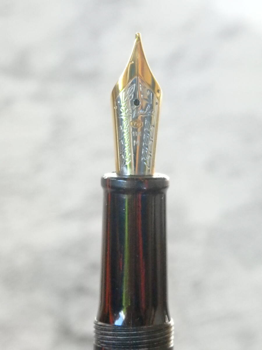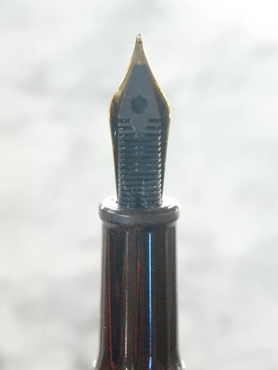ペン先は、高級万年筆に使用される18K750ソリッドゴールドMニブが奢られています。
