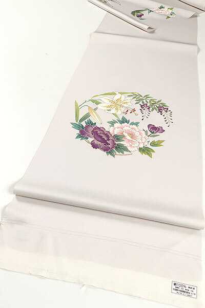 シャリ感のある上質な五泉の塩瀬生地は、灰白色のお色目でございます。