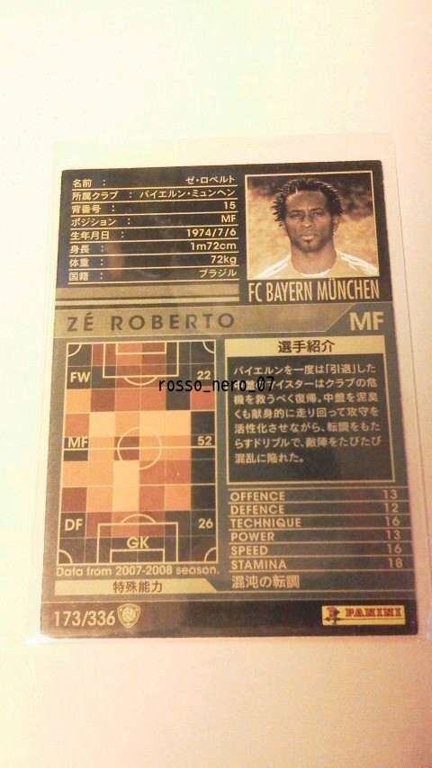 ☆WCCF2007-2008☆07-08☆173☆黒☆ゼ・ロベルト☆バイエルン・ミュンヘン☆Ze Roberto☆FC Bayern Munchen☆