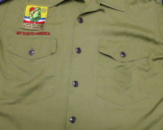アメリカで買い付けましたBOY SCOUTS OF AMERICAのOFFICIALの半袖シャツで素材は綿ポリ混で色は薄緑です。