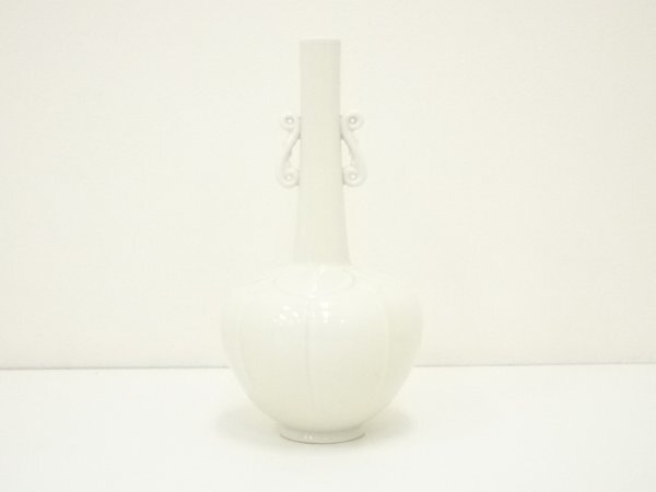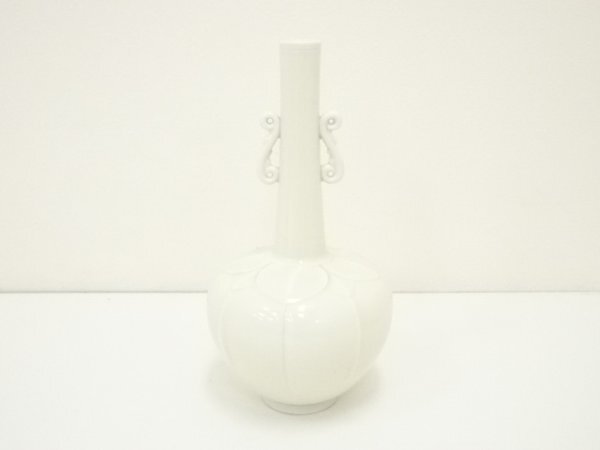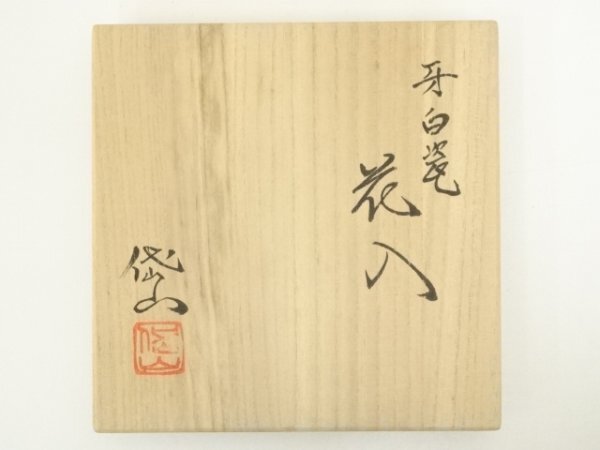 ys7346546; 須恵焼 倉島岱山造 牙白磁花入(共箱)【道】