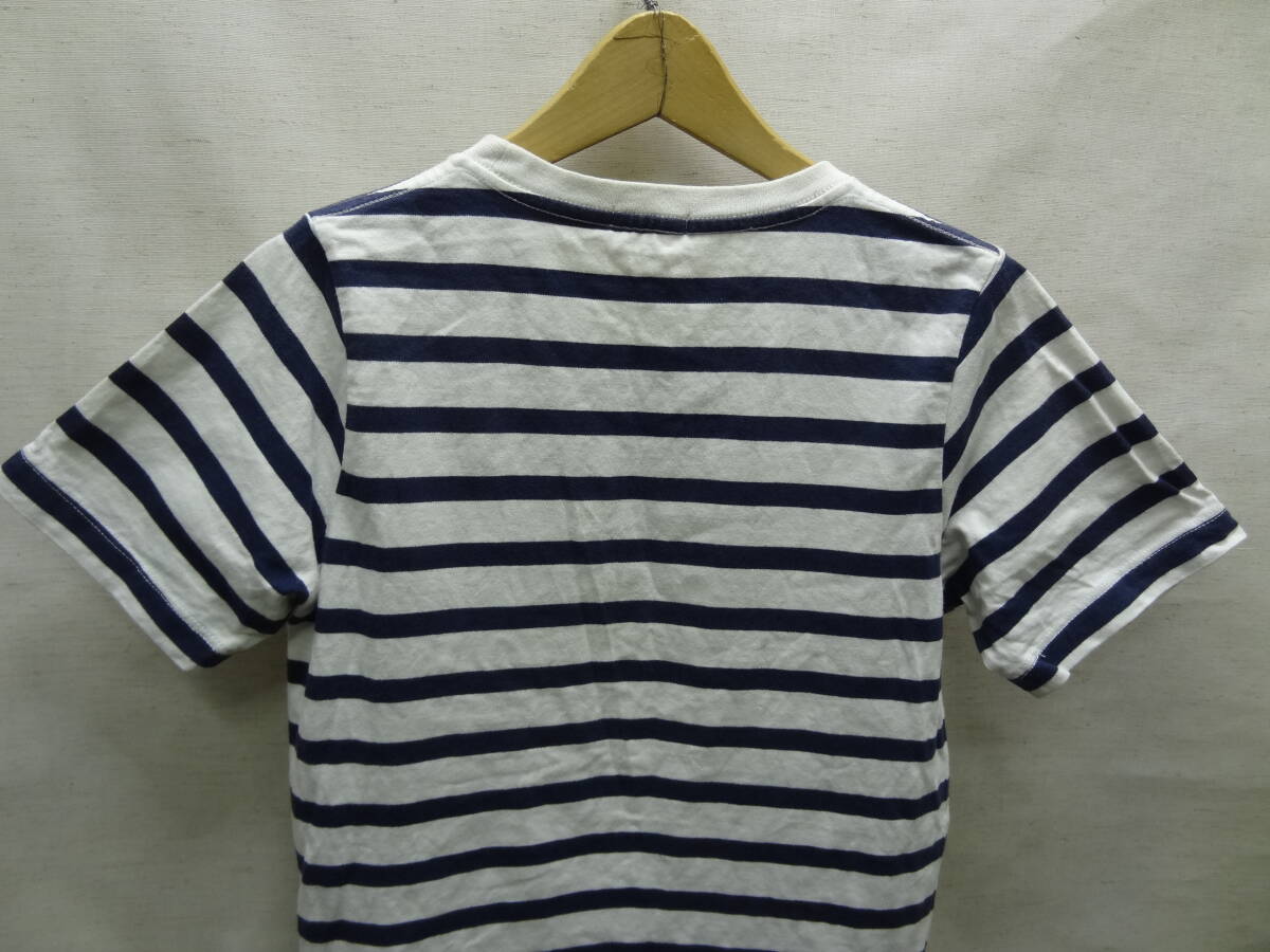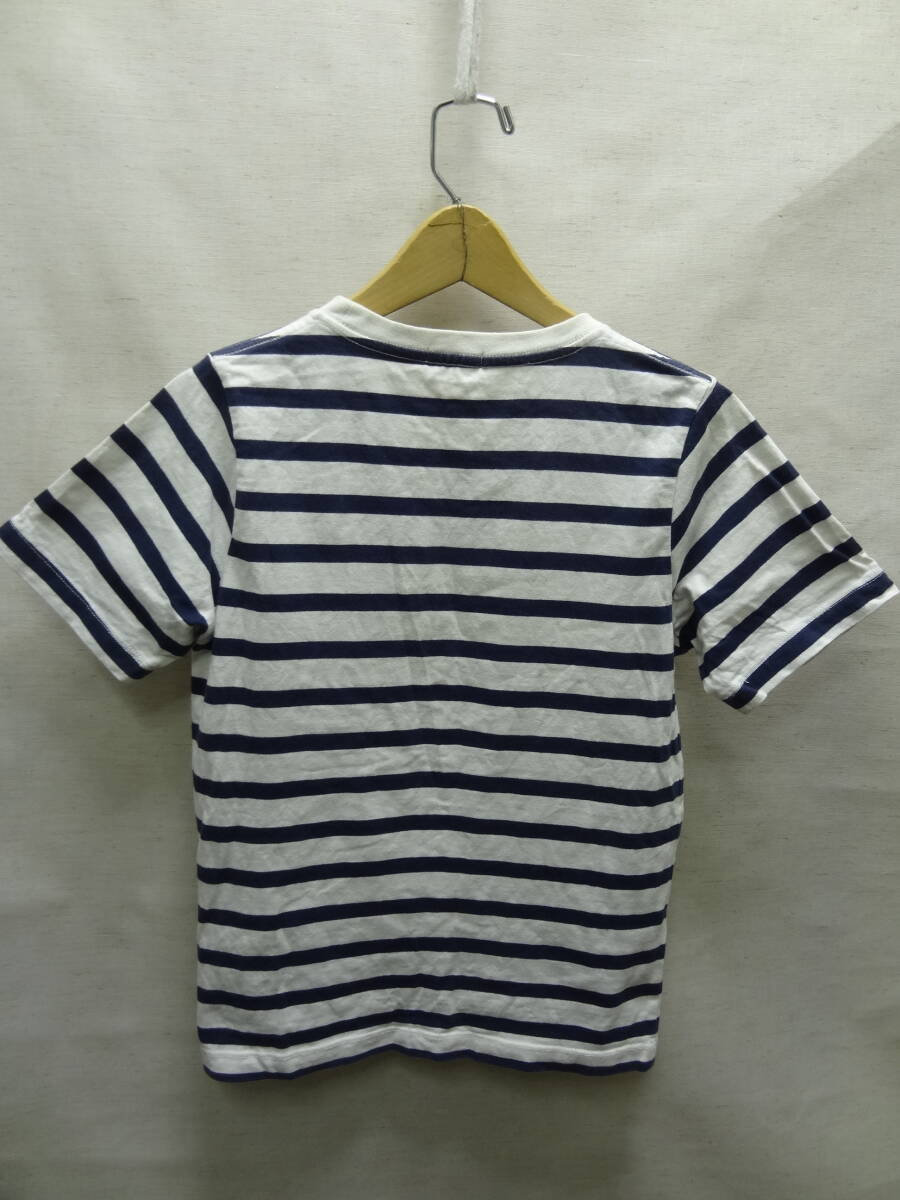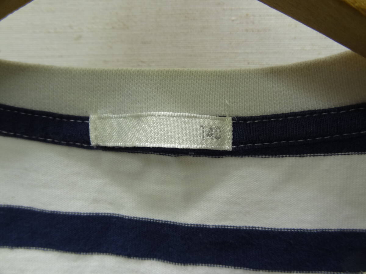 全国送料無料 ジーユー GU 子供服キッズ男&女の子 紺ネイビー色 ボーダー柄 ポケット付き 半袖 Tシャツ 140