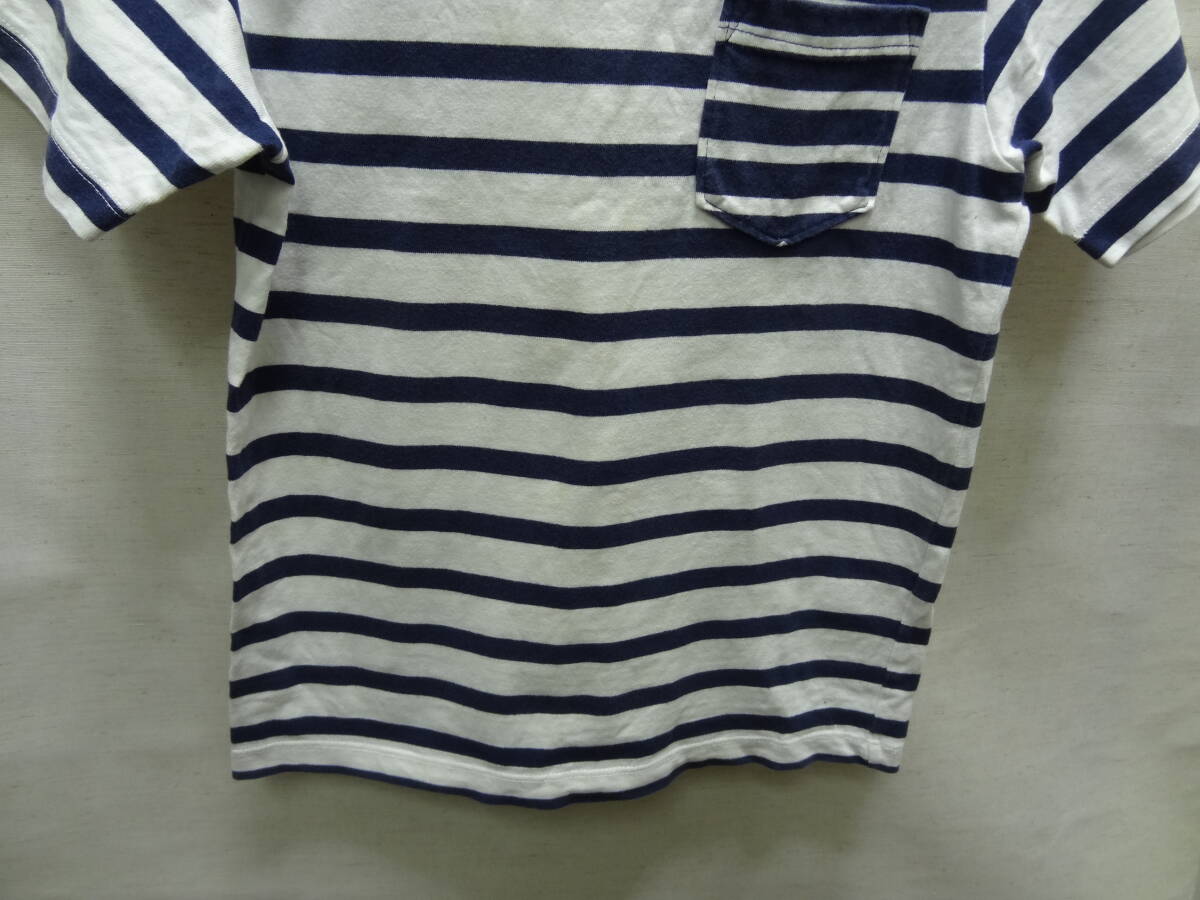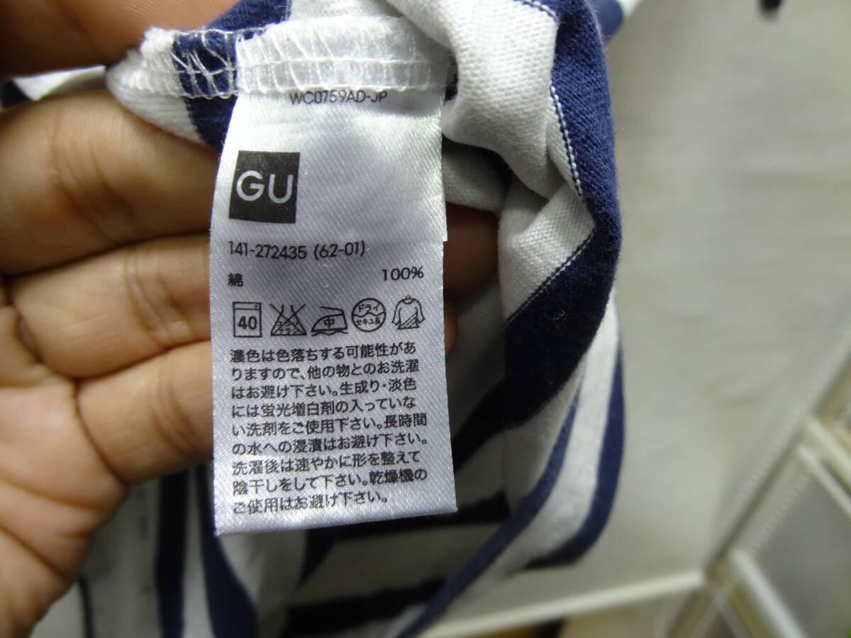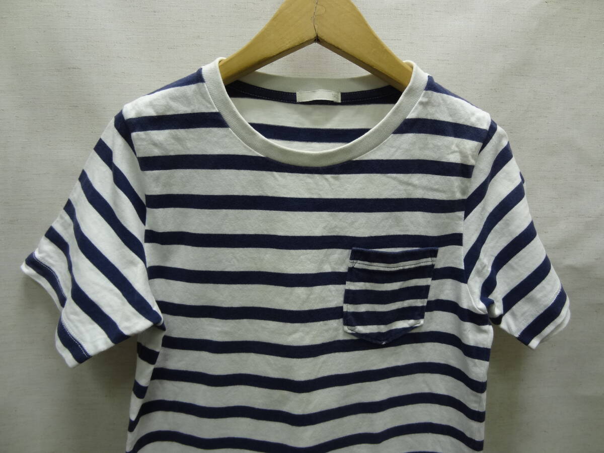 全国送料無料 ジーユー GU 子供服キッズ男&女の子 紺ネイビー色 ボーダー柄 ポケット付き 半袖 Tシャツ 140