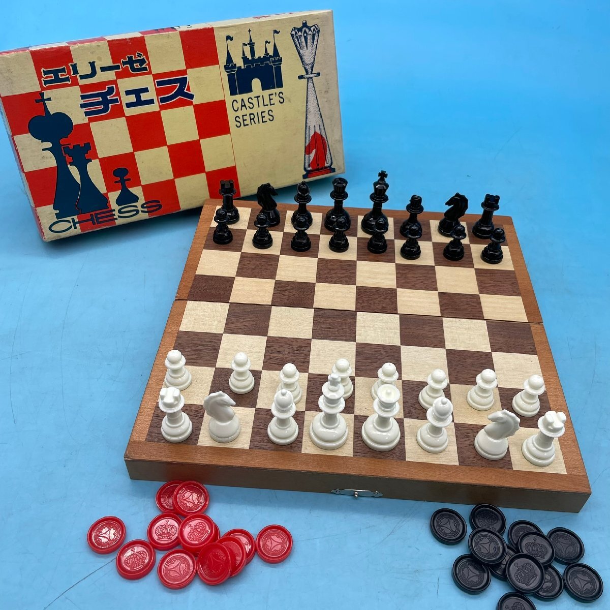 F2【16596P195】チェス エリーゼ ゲームのはなやま CHESS CASTLE‘SSERIES レトロ 玩具 インテリア ボドゲ 木製 ボードゲーム はなやま玩具