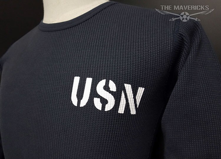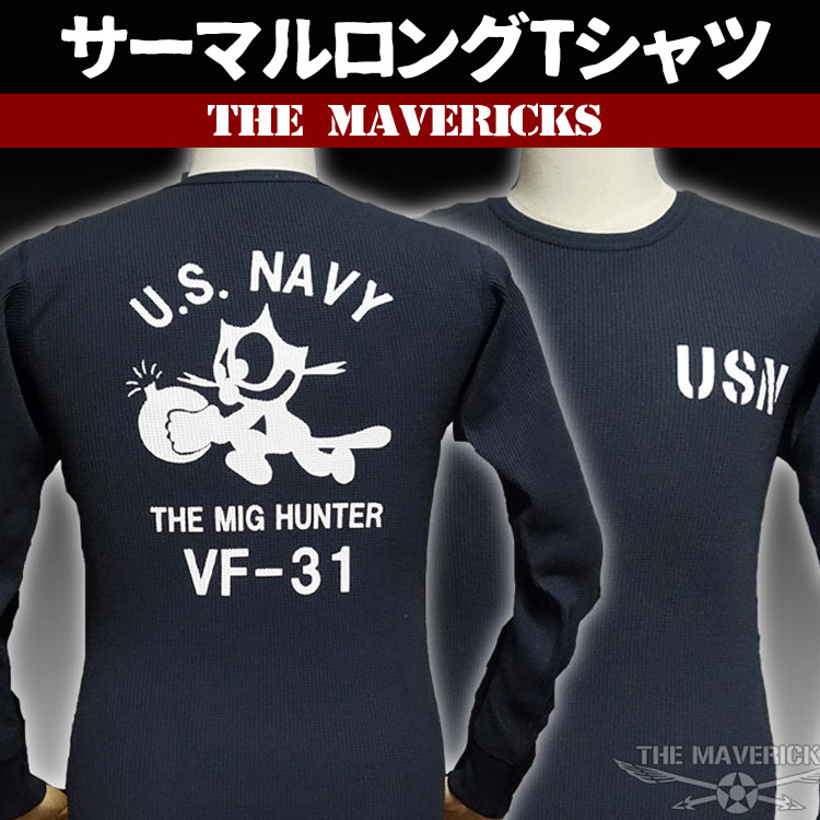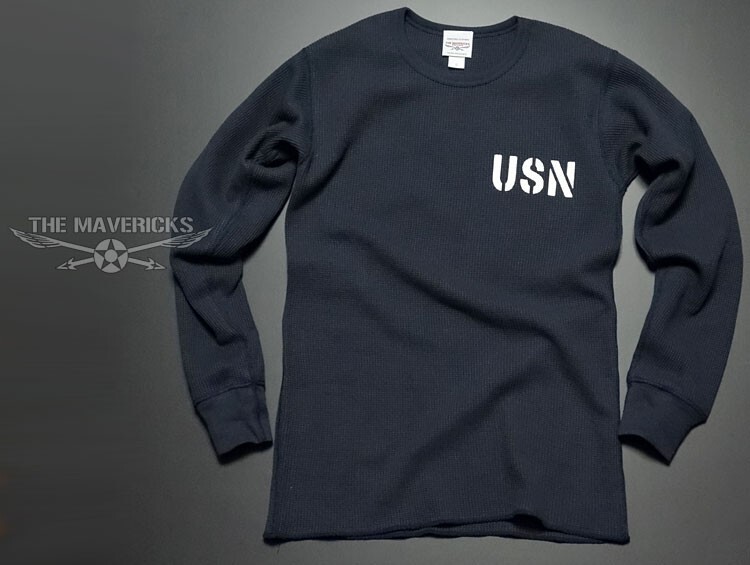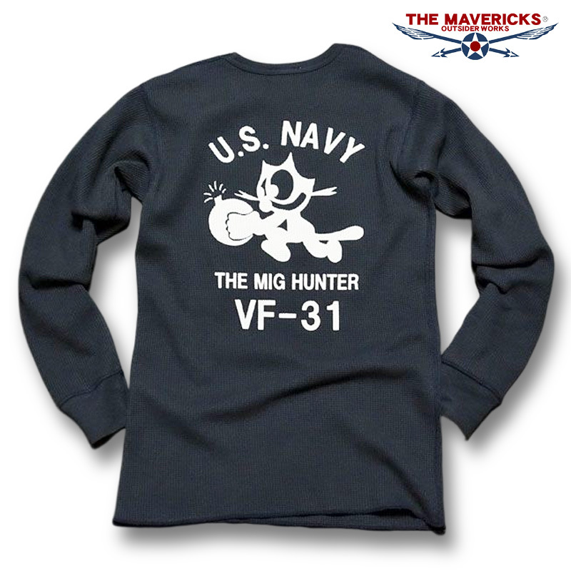 ミリタリー サーマル ワッフル 長袖 Tシャツ S メンズ 米海軍 NAVY 黒猫 MAVEVICKS ブランド 紺 ネイビー
