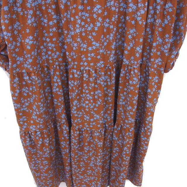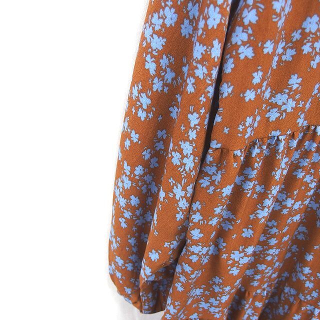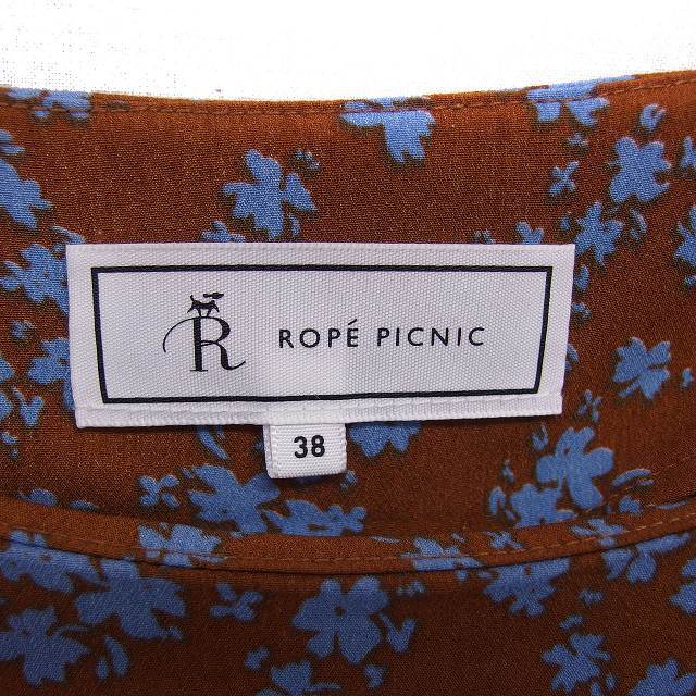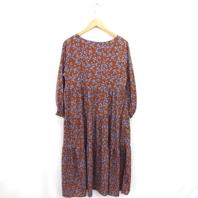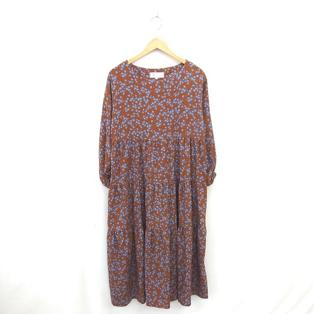 ロペピクニック ROPE Picnic ワンピース 花柄 フレア ロング ボートネック 薄手 プルオーバー 長袖 38 ブラウン ブルー 茶 青 /TT レディース