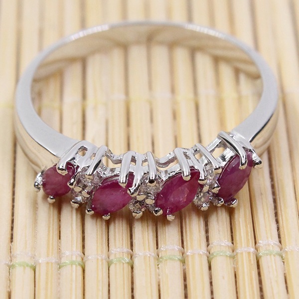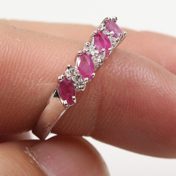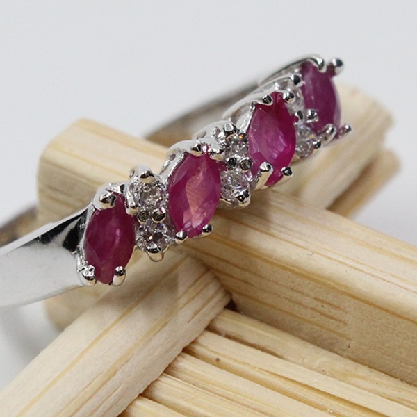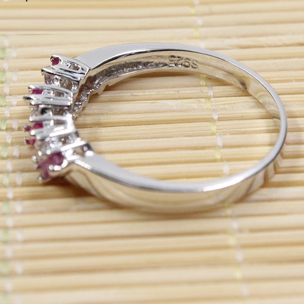 女性用,ナチュラルルビーエンゲージリング、100% スターリングシルバー925、ウェディングジュエリー