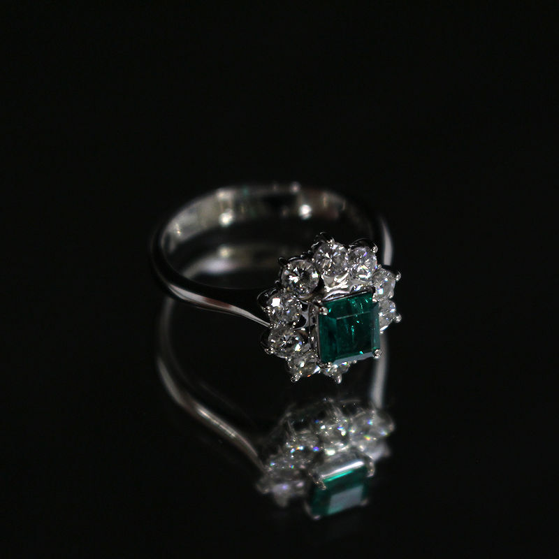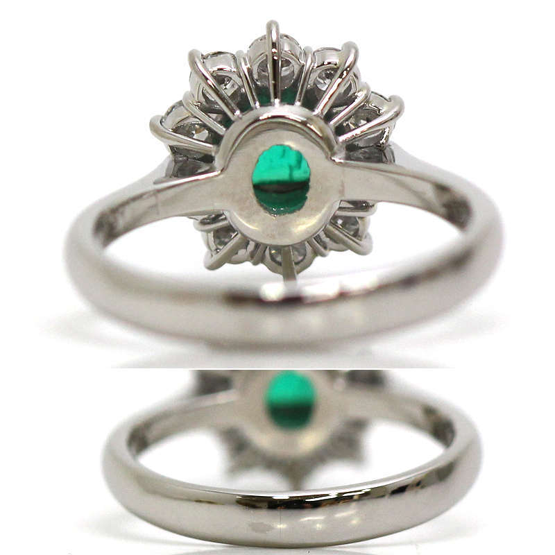 コメント | 美しい輝きのエメラルドとダイヤモンドがあしらわれたリング★ お手元に存在感を放ち、華やかかつ上品に飾ってくれます♪ Pt900という素材を使っておりますので、プラチナ資産としてもオススメ! こちらは未使用に近い、キレイな状態です(中古品により若干の小キズはございます)。 この機会に是非いかがでしょうか? |